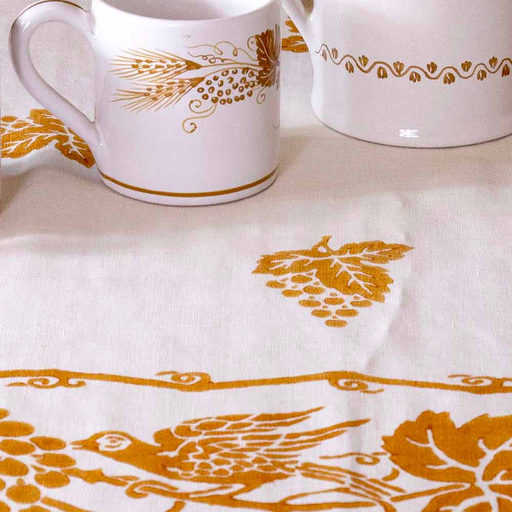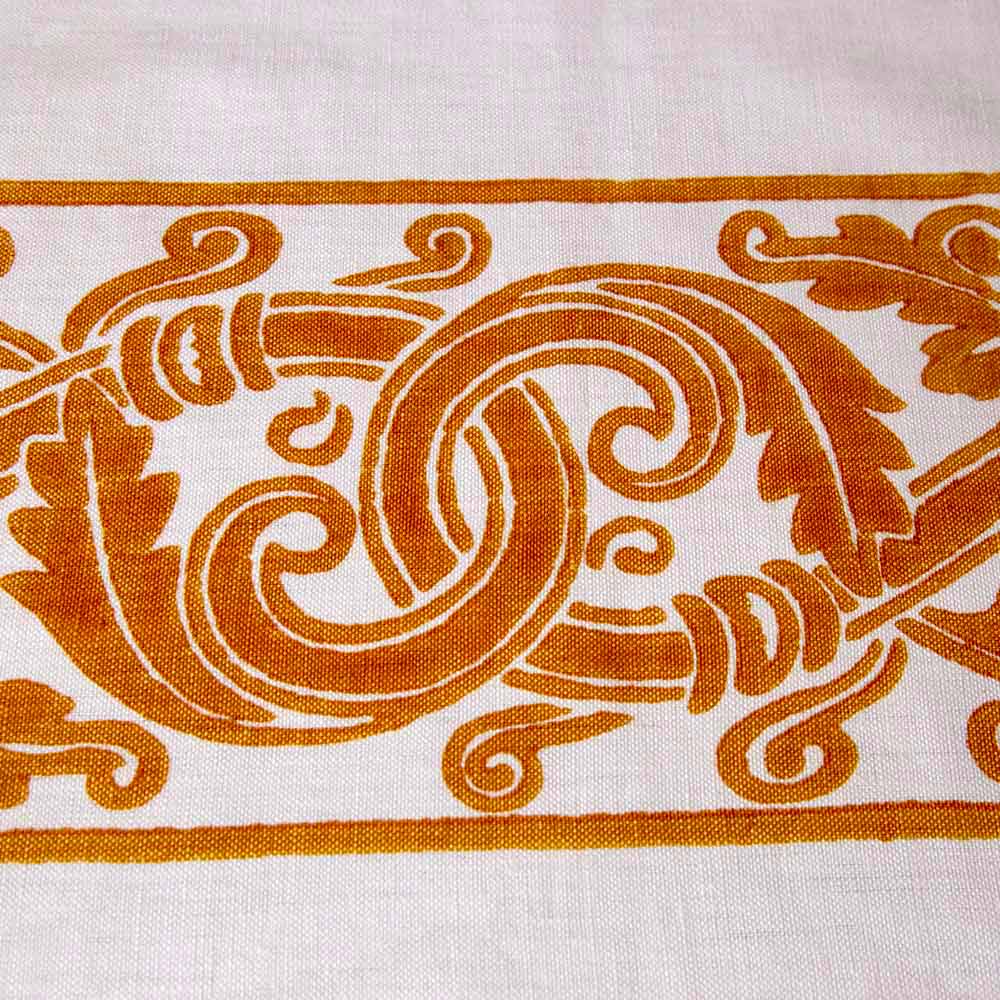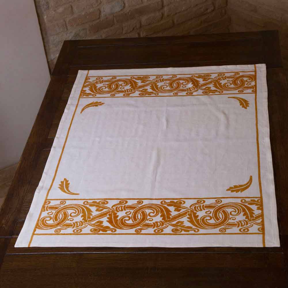 Serviciu de mic dejun artizanal (placemat și 2 șervețele) confecționat din lenjerie pură cu imprimeu artistic pe țesături antice decorate manual, disponibil în trei variante, o piesă de calitate unică fabricată în Italia.