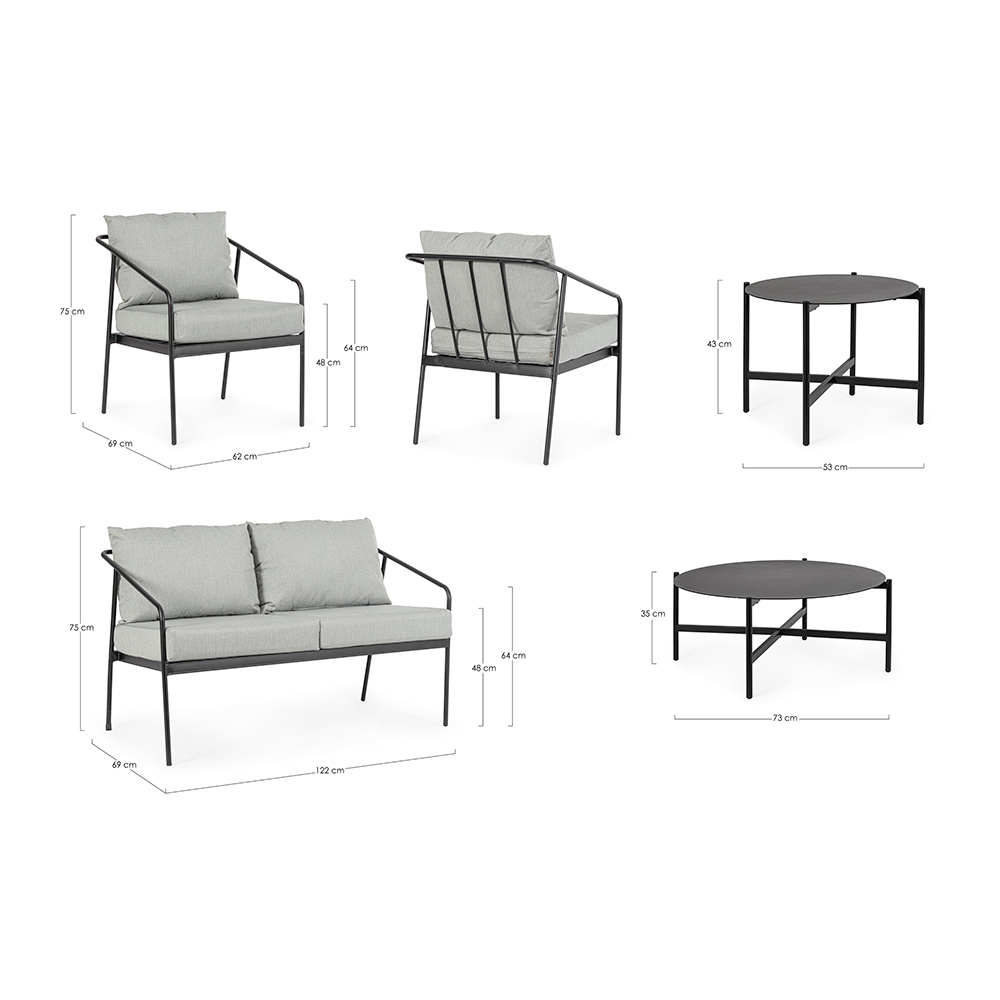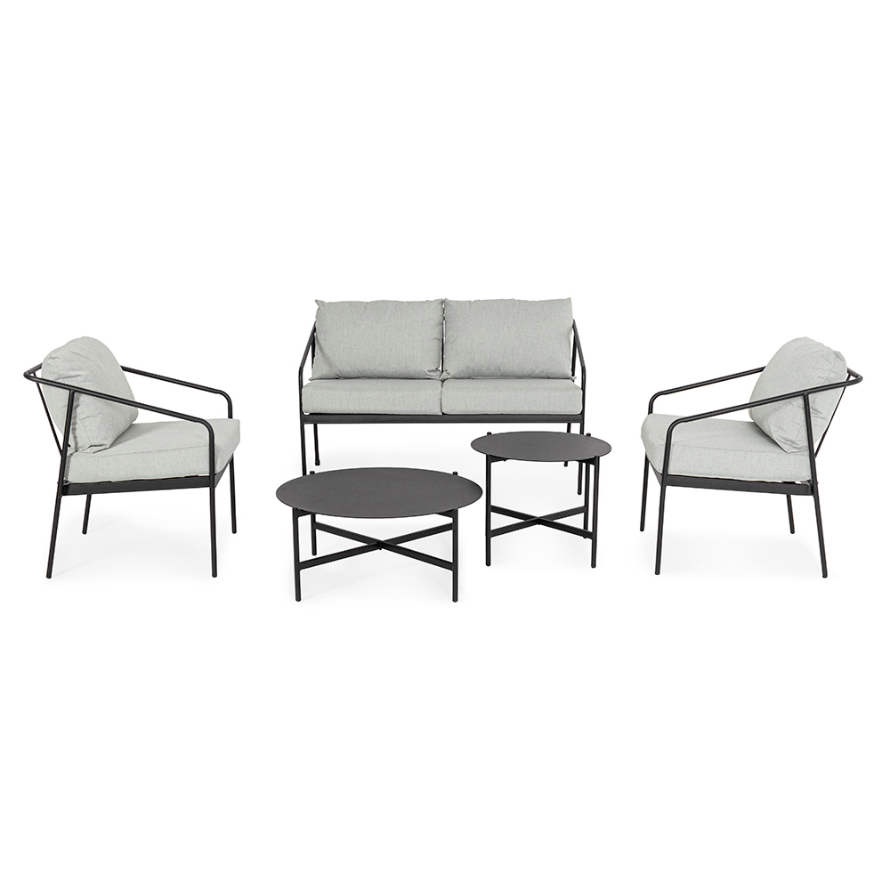 Acest set de lounge de grădină este o adevărată odă pentru designul modern și confortul în aer liber . Fiecare piesă, de la fotoliile simple până la canapeaua cu două locuri , a fost concepută pentru a oferi o experiență de relaxare de neegalat, datorită pernelor moi de șezut și spătar pe care le adaptează la orice peisaj sau stil de mobilier de exterior. Structura din oțel este robustă și concepută pentru a rezista în timp, dar forma sinuoasă conferă setului o lejeritate vizuală care îmbunătățește mediul înconjurător fără a-l îngreuna.