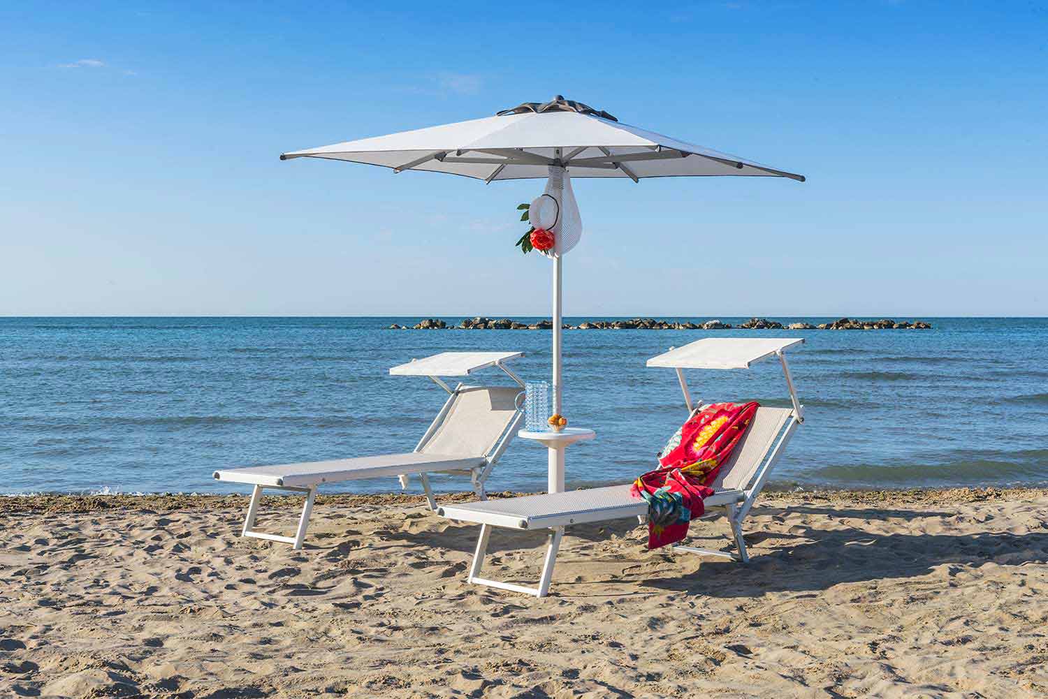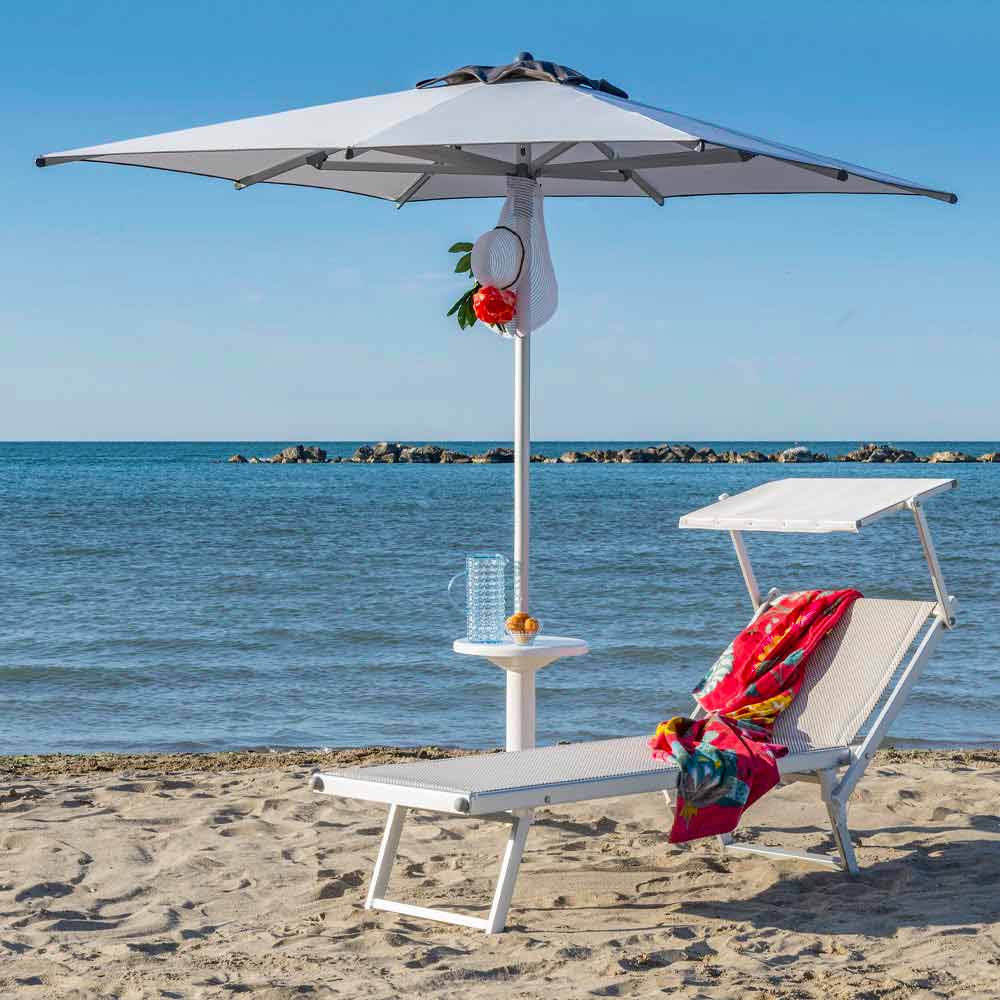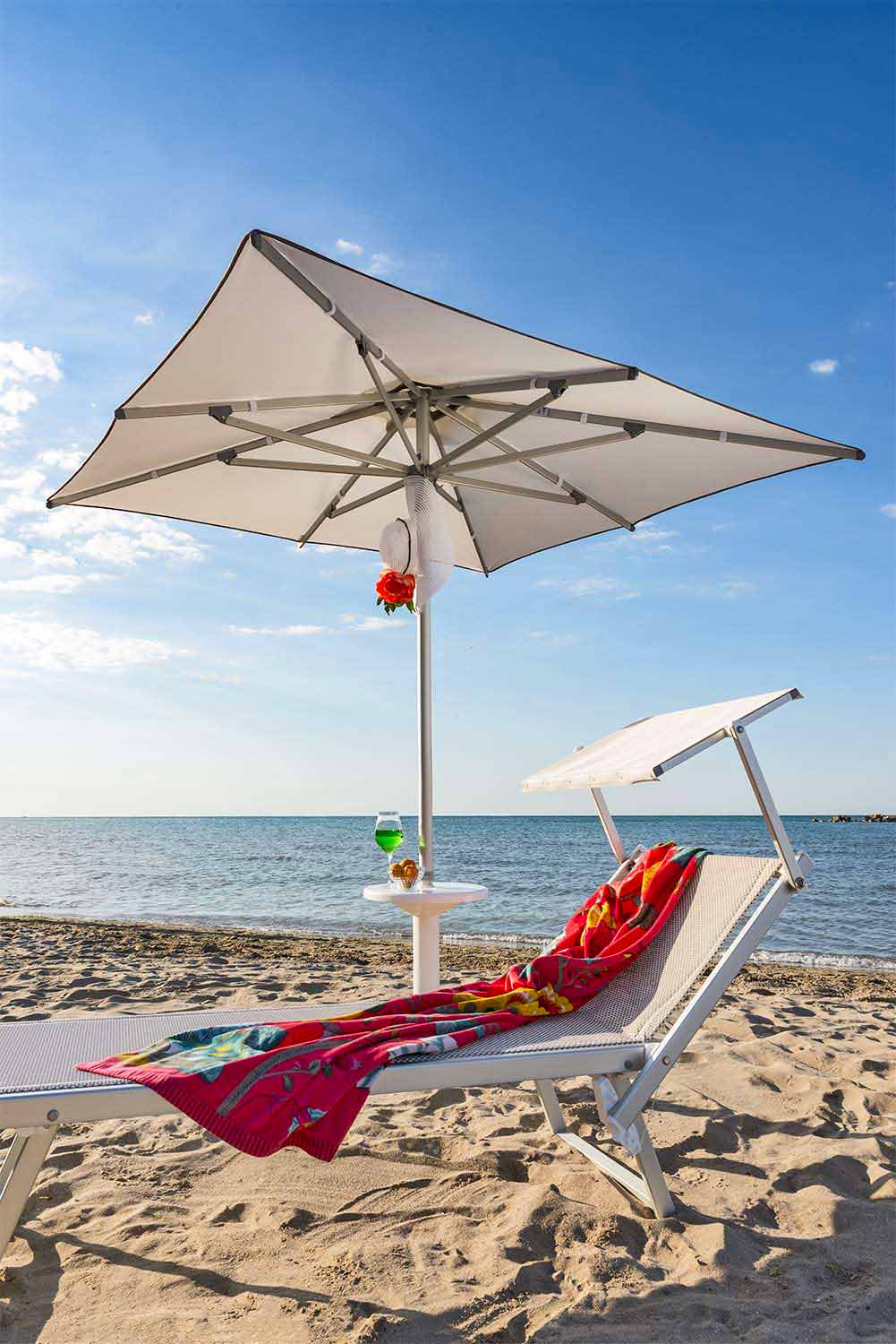 Cadrul este construit in intregime cu 16 microni aluminiu anodizat primar, în timp ce toate piulițele și șuruburile sunt în Aisi 316 din oțel inoxidabil. Prelata și parasolul sunt acoperite cu poliester cu PVC .