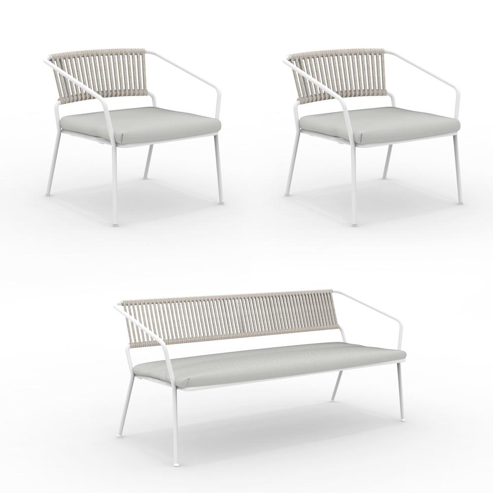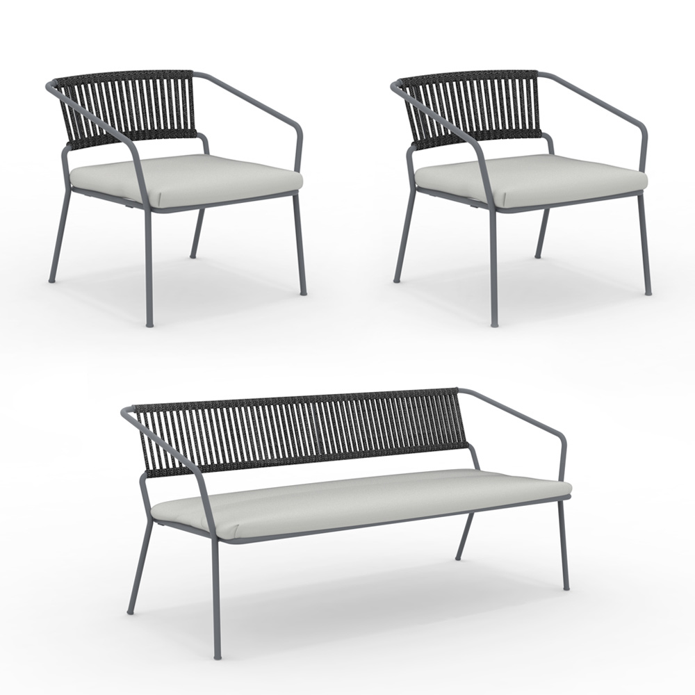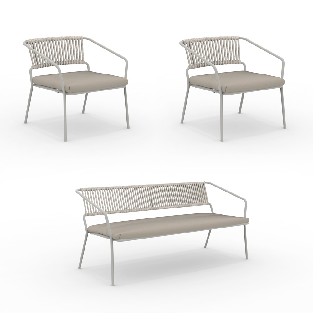 Set de lounge de grădină format din 2 fotolii și 1 canapea cu 2 locuri, fabricat în Italia