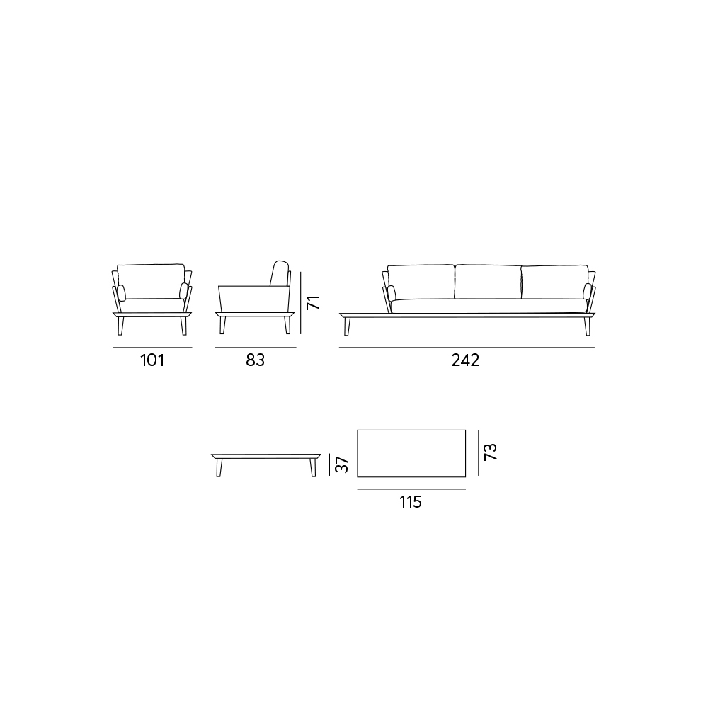 - canapea cu trei locuri: L 242 x D 83 x H 71 cm;