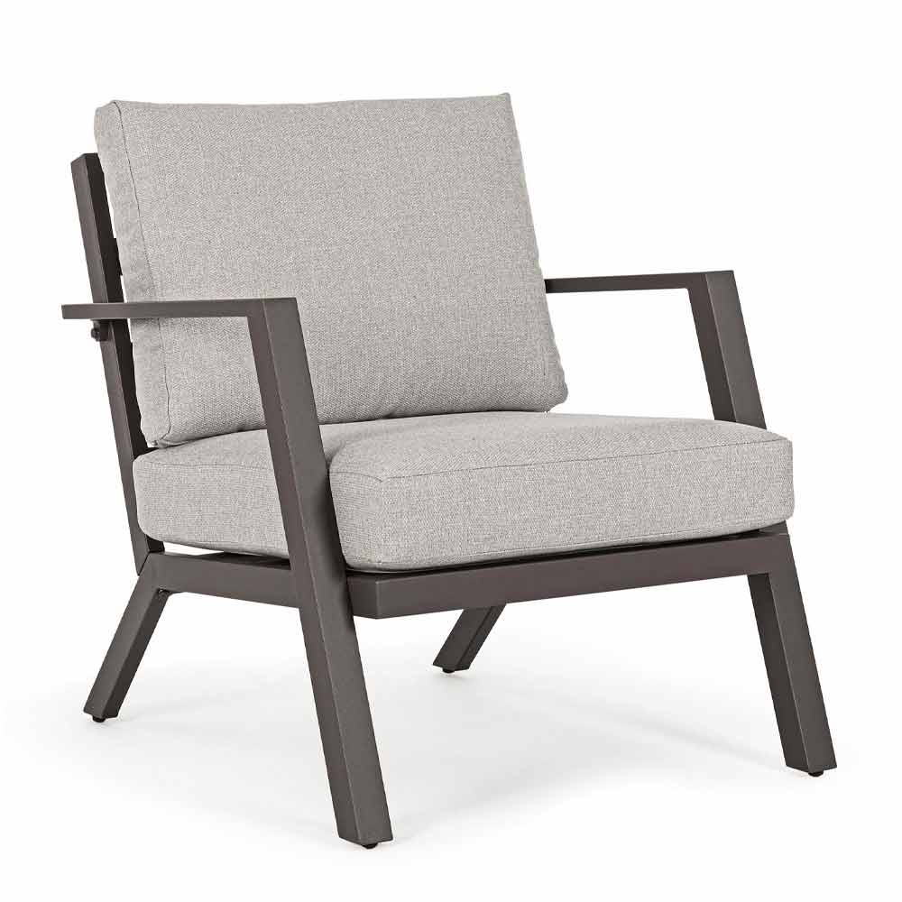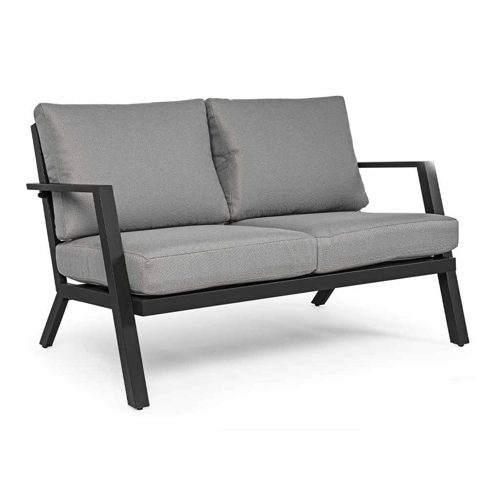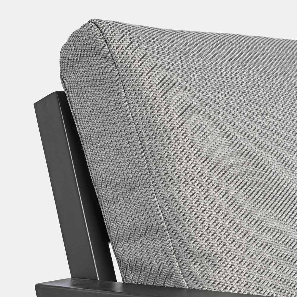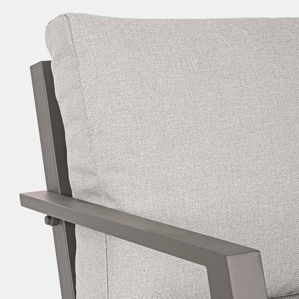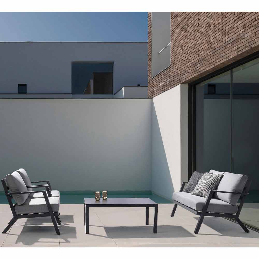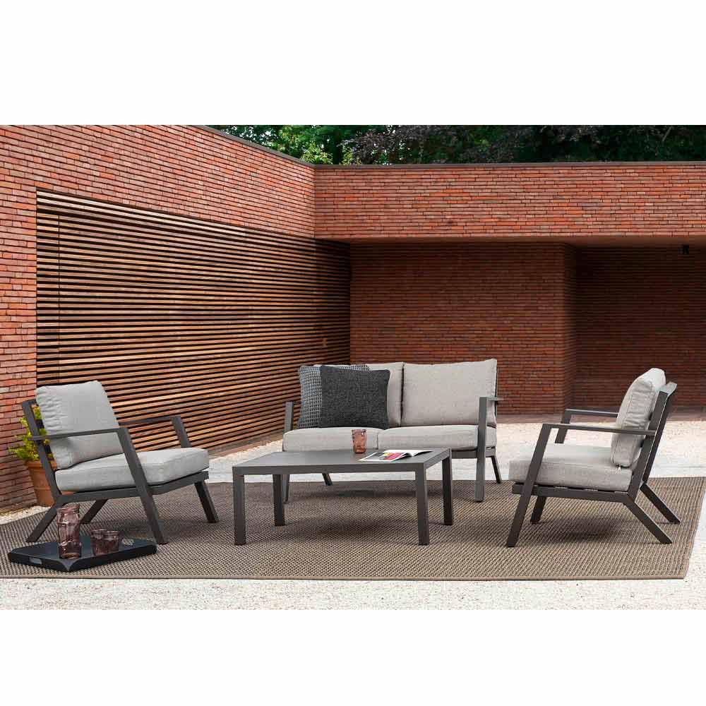Compoziție de living în exterior din aluminiu cu perne detașabile.
