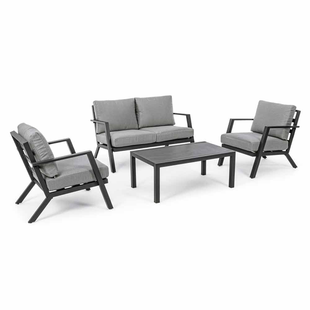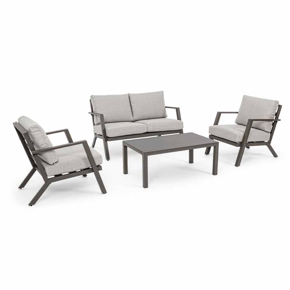 Structură din aluminiu acoperit cu pulbere (poliester). Perne pentru scaune și spate cu huse detașabile cu țesătură olefinică (100% polipropilenă). Picioare reglabile. Șuruburi din oțel inoxidabil. De asamblat.
