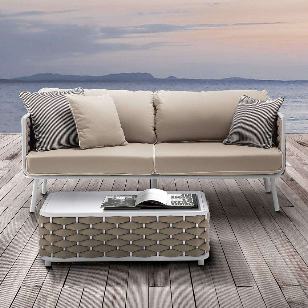 Datorită utilizării unor materiale speciale de înaltă calitate , această canapea de exterior garantează o rezistență excelentă la intemperii, murdărie, praf și pete.
