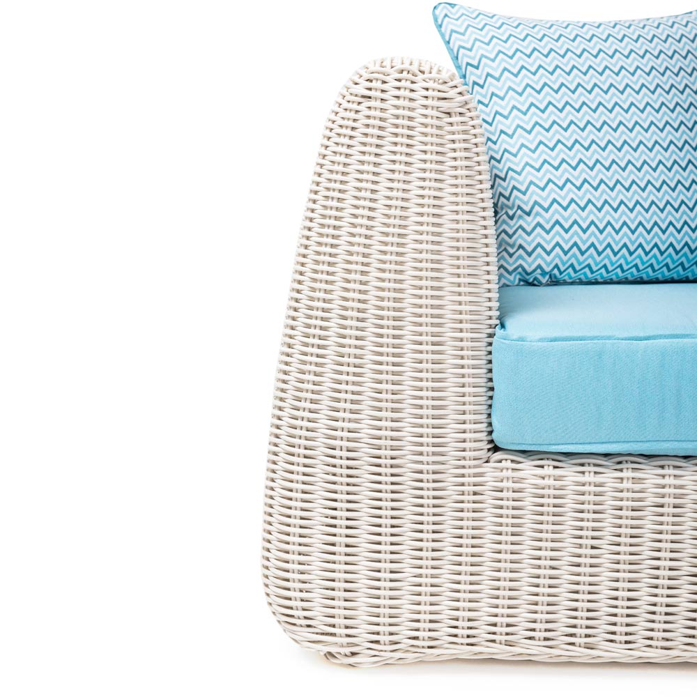 Designul refinat , calitatea foarte ridicată a materialelor și formele sale sinuoase îl fac perfect pentru amenajări interioare și exterioare. Datorită utilizării materialelor speciale de înaltă calitate , acest lounge de exterior nu se teme de intemperii și de schimbările de temperatură datorită certificării fibrei țesute.
