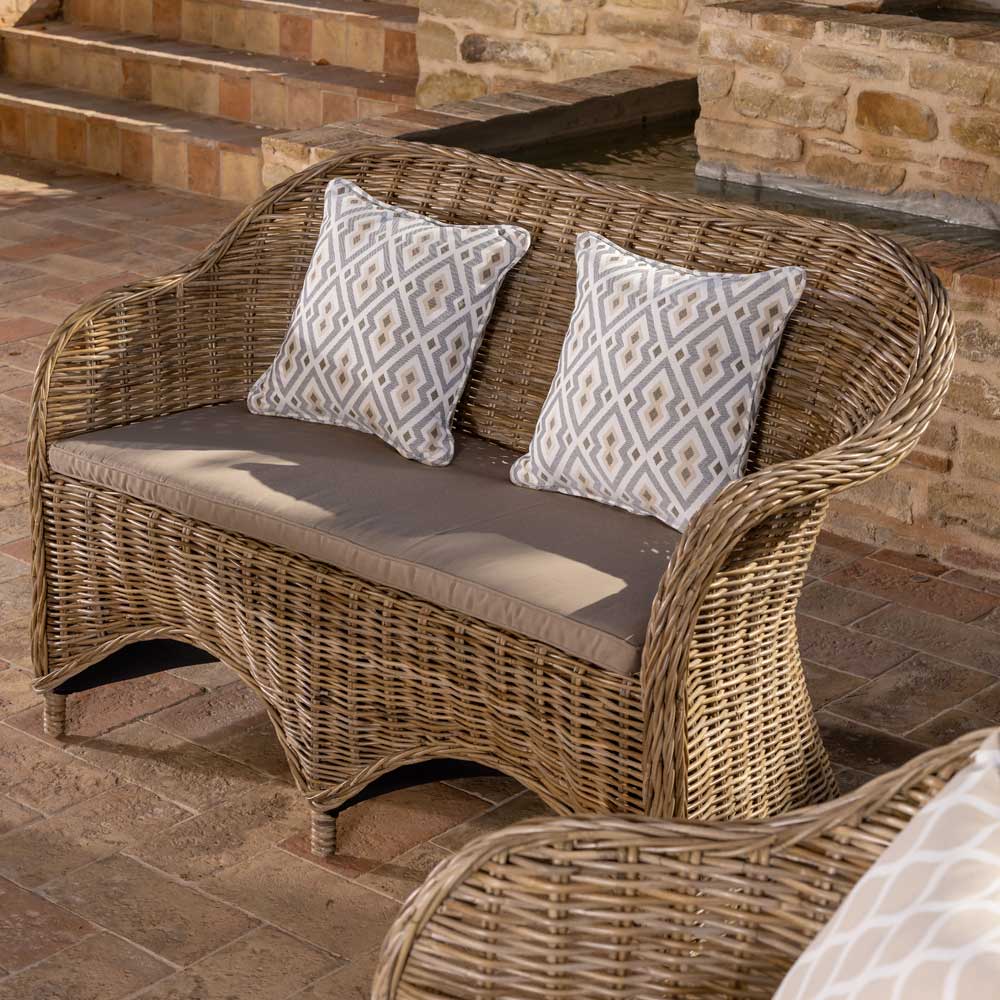 Set lounge de exterior format din 2 fotolii , sofa și masă de cafea din Kubu țesut manual cu perne de șezut incluse standard în finisajul standard " Griu ". Kubu este un material natural printre cele mai rezistente dintre cele care pot fi găsite în natură, dar care rămâne întotdeauna foarte ușor .
