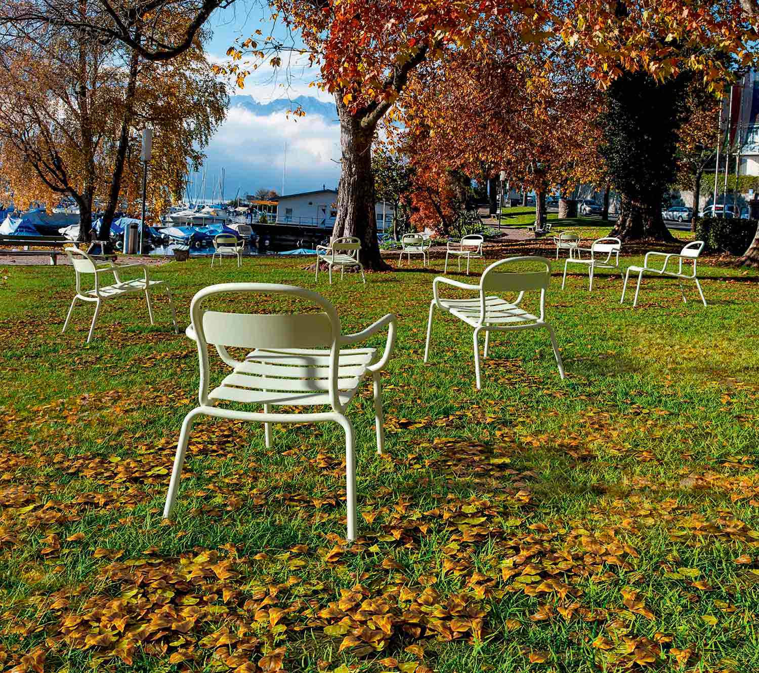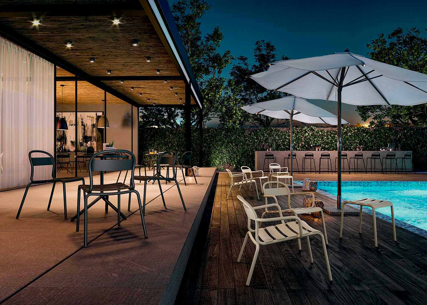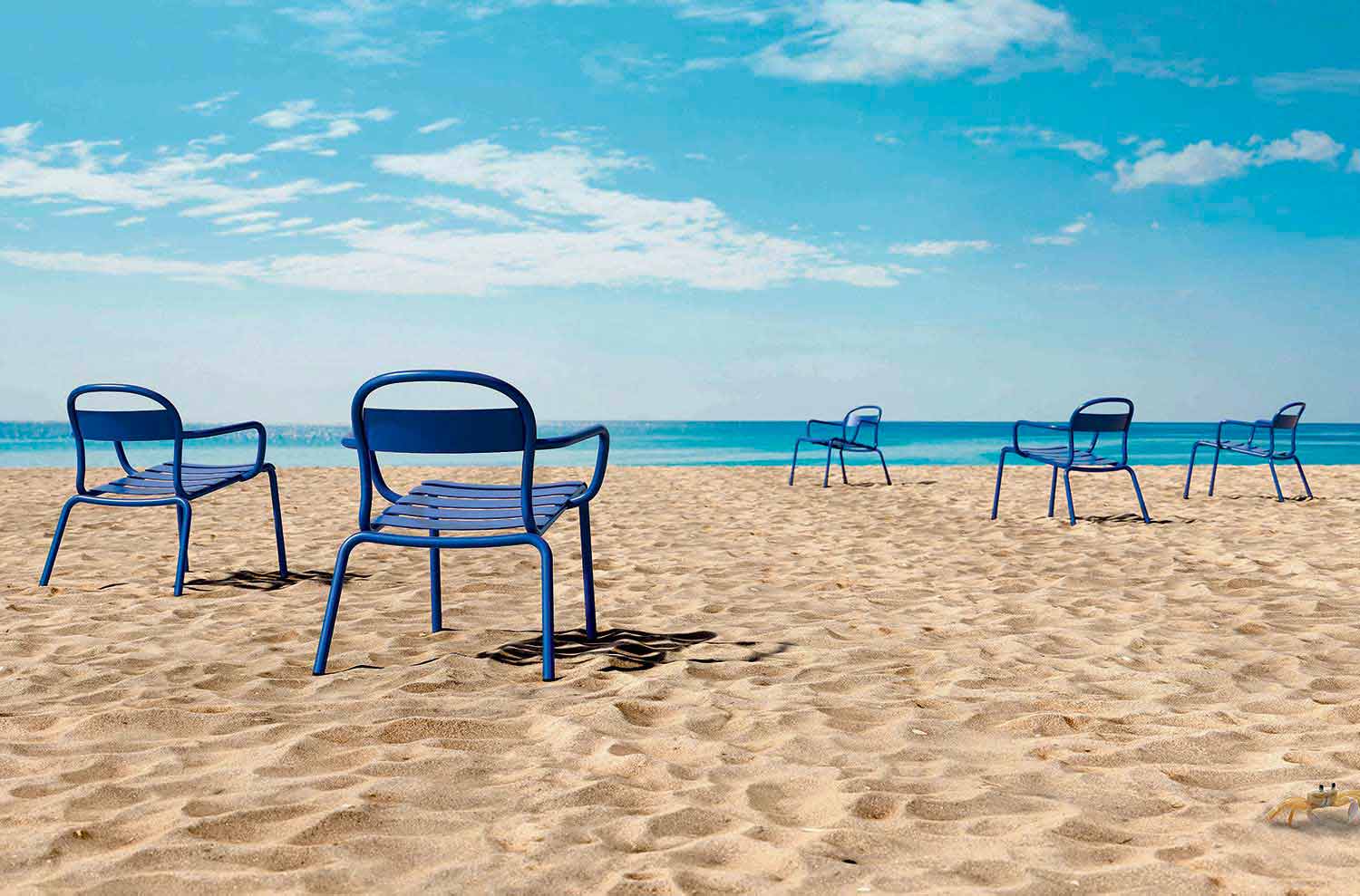 Designul acestei șezlonguri îl face ușor imaginabil într-o grădină sau terasă, dar nu exclude utilizarea acesteia chiar și în situații interioare în medii domestice și non-domestice. Realizat integral din aluminiu vopsit , datorită celor 8 culori disponibile, se adaptează perfect oricărei situații de mobilier, de la cele mai moderne la cele mai tradiționale, contribuind la conferirea culorii și personalității camerei.