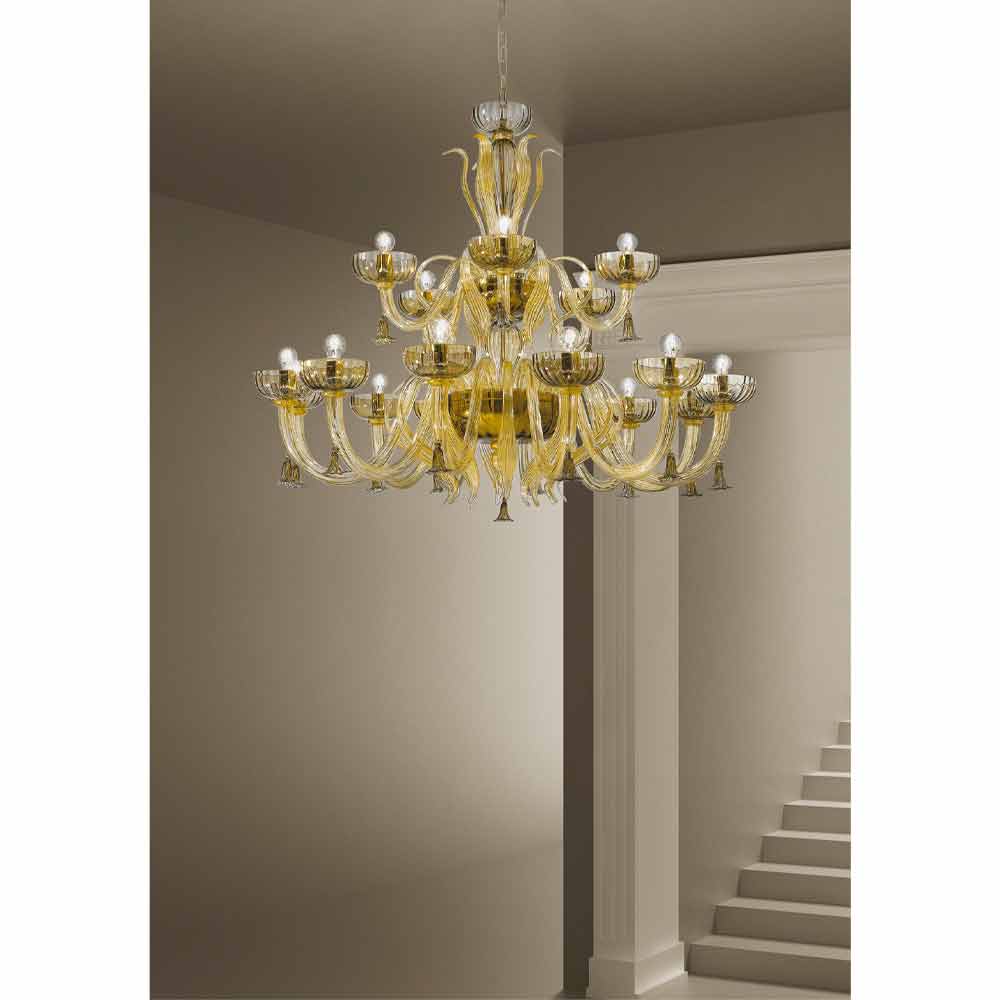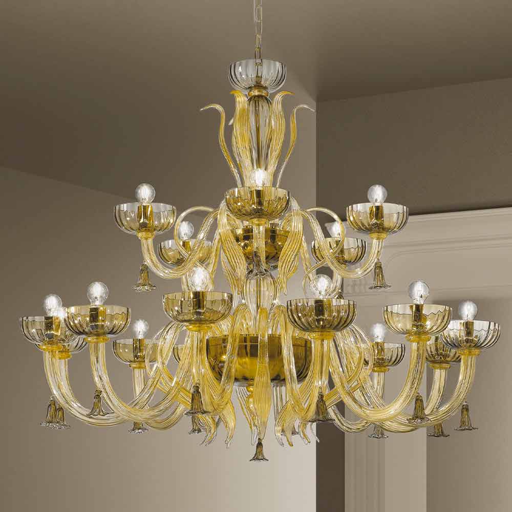 Candelabru cu 18 lumini din sticlă venețiană și aur de 24k, realizat manual în Italia.