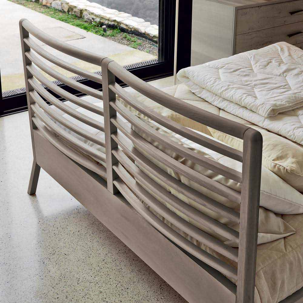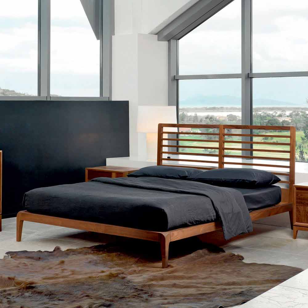 În această soluție cel mai armonios pat oferă o căptușeală căptușită, împodobită cu cusături care trasează linii verticale. Esențială și elegantă, este făcută din nuci solide finisate în ulei, care se introduce în cele mai rafinate contexte de mobilier.