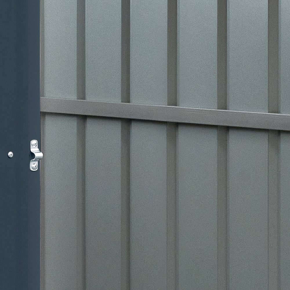 Culoarea închisă și designul panoului vertical oferă un aspect modern care se potrivește perfect în orice grădină sau spațiu exterior, păstrând armonia estetică. Ușa facilitează accesul și deplasarea obiectelor voluminoase, făcând casa extrem de funcțională .