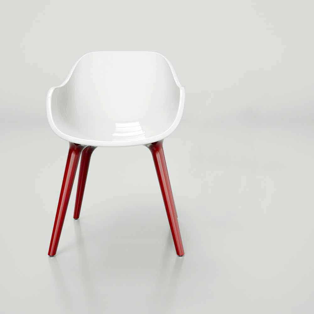 Picioarele îmbinate în carcasă și liniile sale moi, evidențiate de multiple combinații de culori, dau viață unui scaun versatil, cameleonic și atemporal.