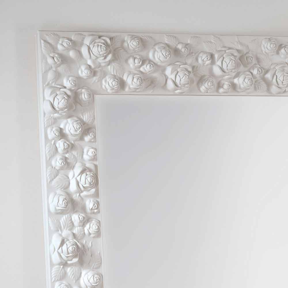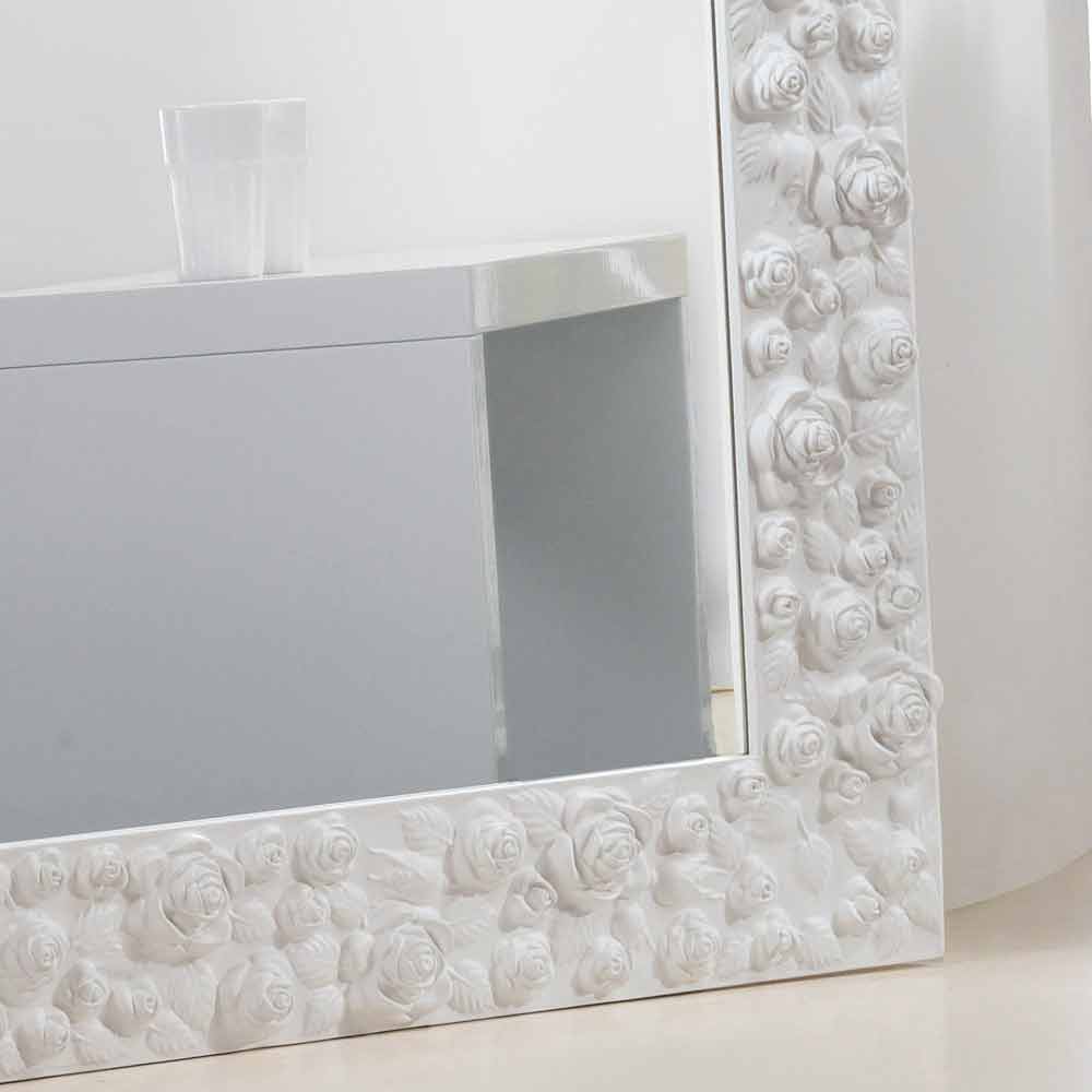 Floarea oglinzii se caracterizează printr - o măiestrie realizată folosind materiale de înaltă calitate și folosind experiența artizani italieni calificați. Cadrul este realizat din lemn si este decorat cu trandafiri. finisaj satin alb. sticlă oglindă, 4mm grosime. Made in Italy. De la hang atât pe verticală cât și pe orizontală.