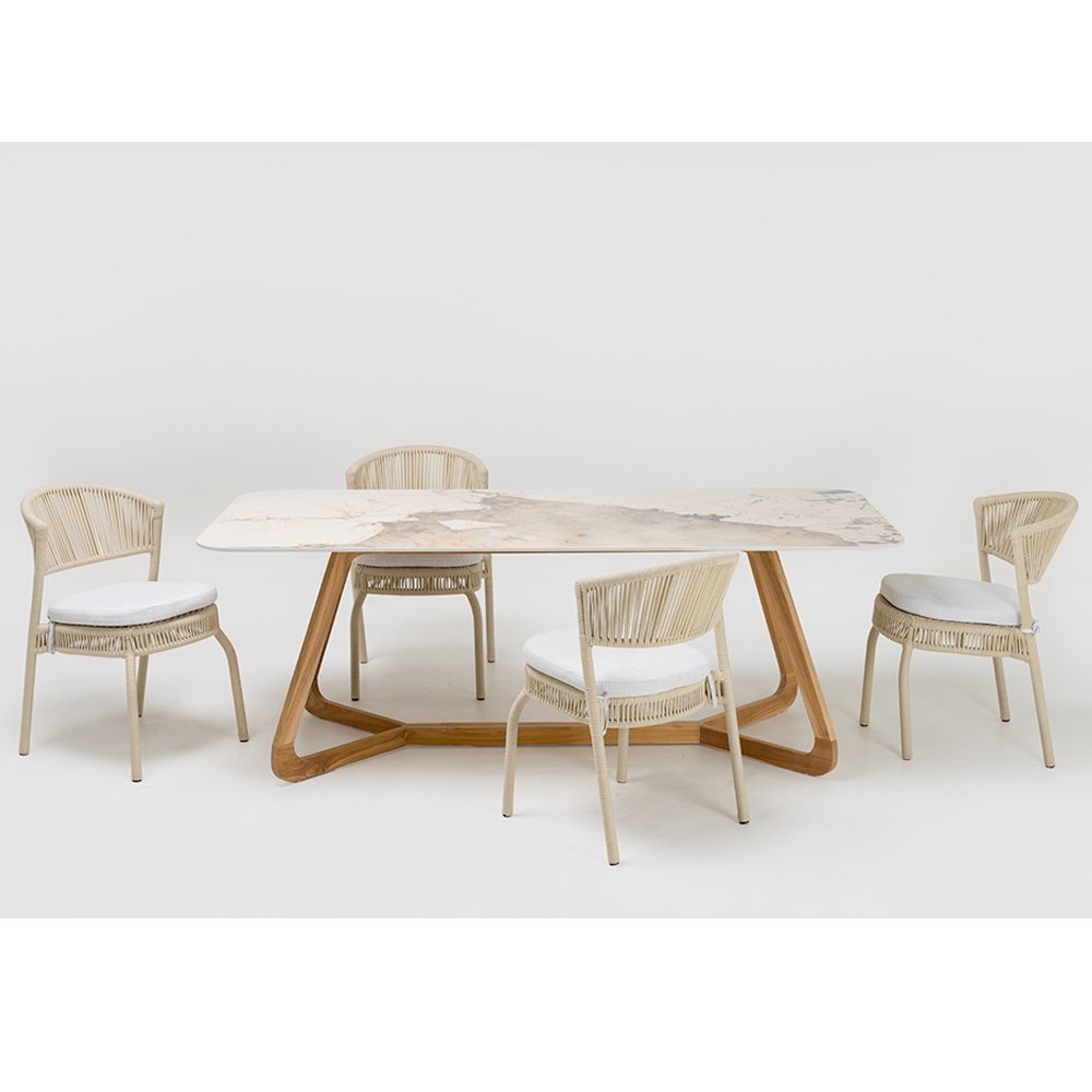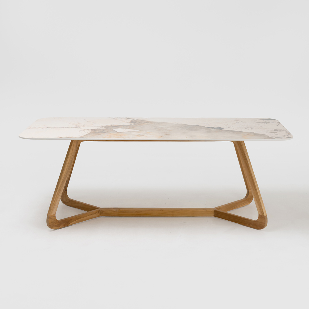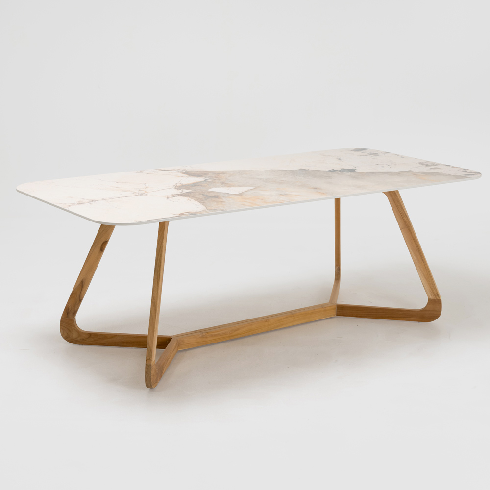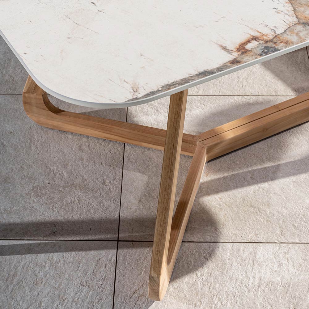 Masă din ceramică și tec pentru interior și exterior, fabricată în Italia