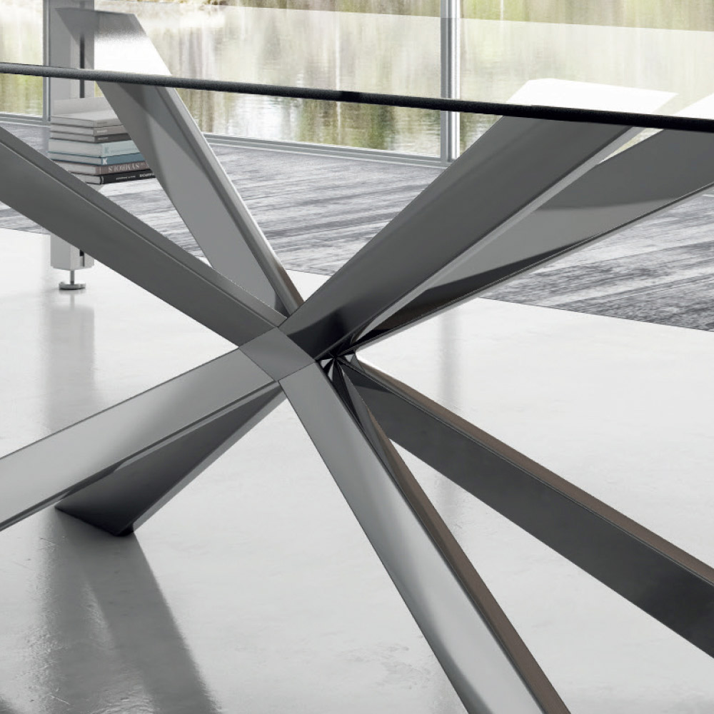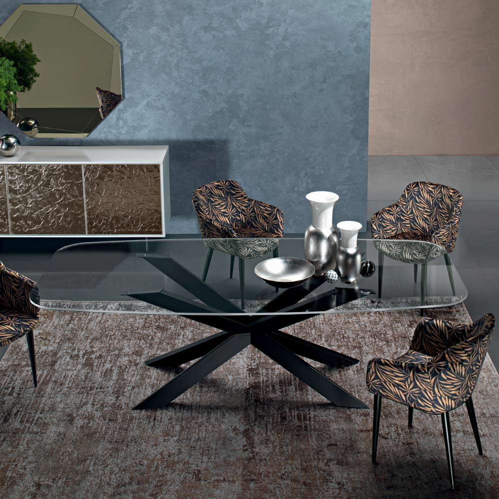 Masa de sufragerie cu blat butoi de sticla si baza din otel Made in Italy.