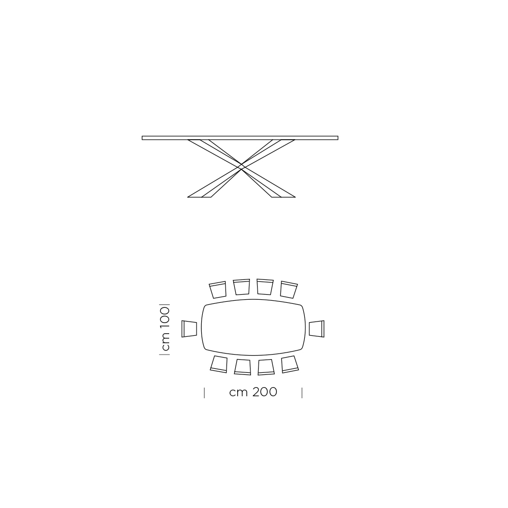 - L 200 x D 100 x H 72,7 cm (10 locuri);