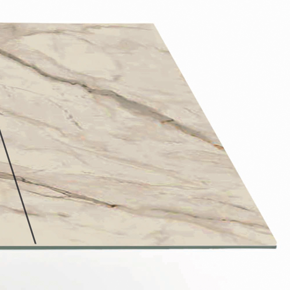 Finisaje superioare disponibile:- calacatta de aur cu nervuri lustruite (grosime 10 mm sticla + 5 mm ceramica)