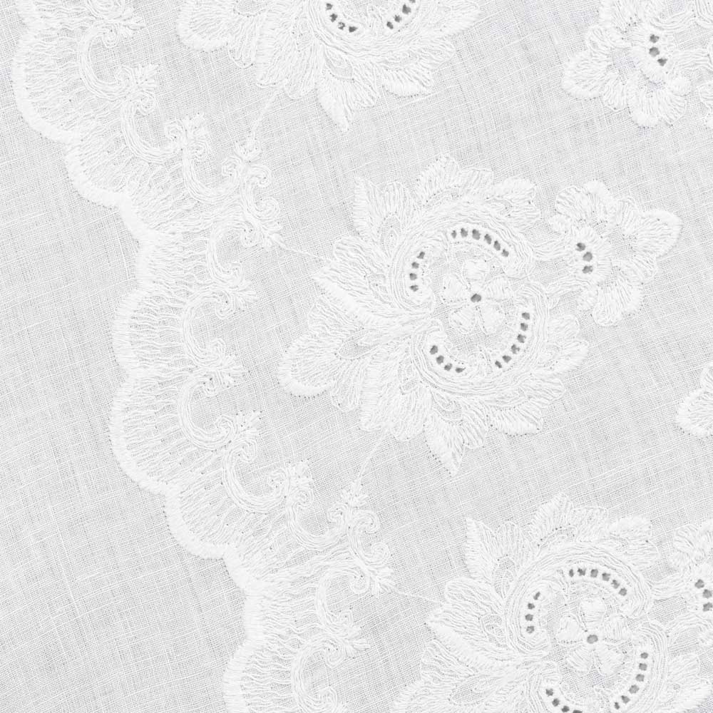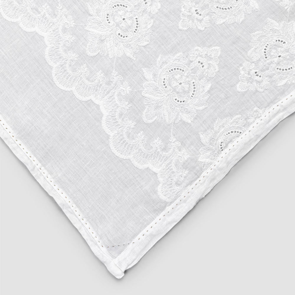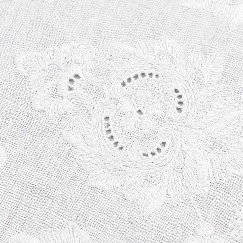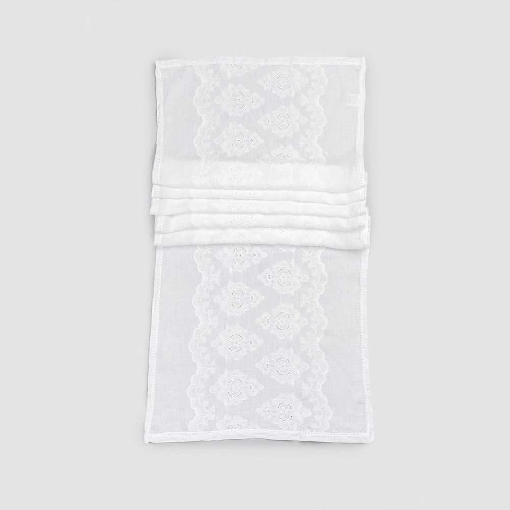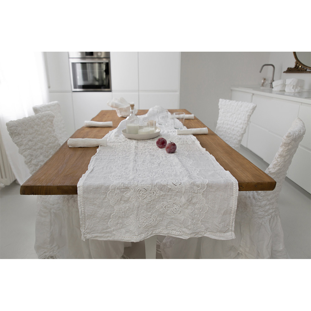 Alergător de masă din in pur, cu broderie din bumbac, design elegant de lux fabricat în Italia.
