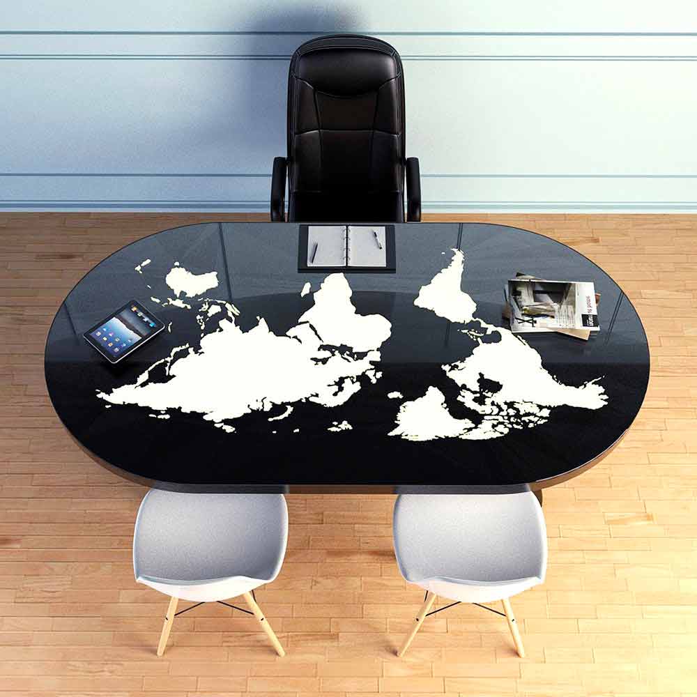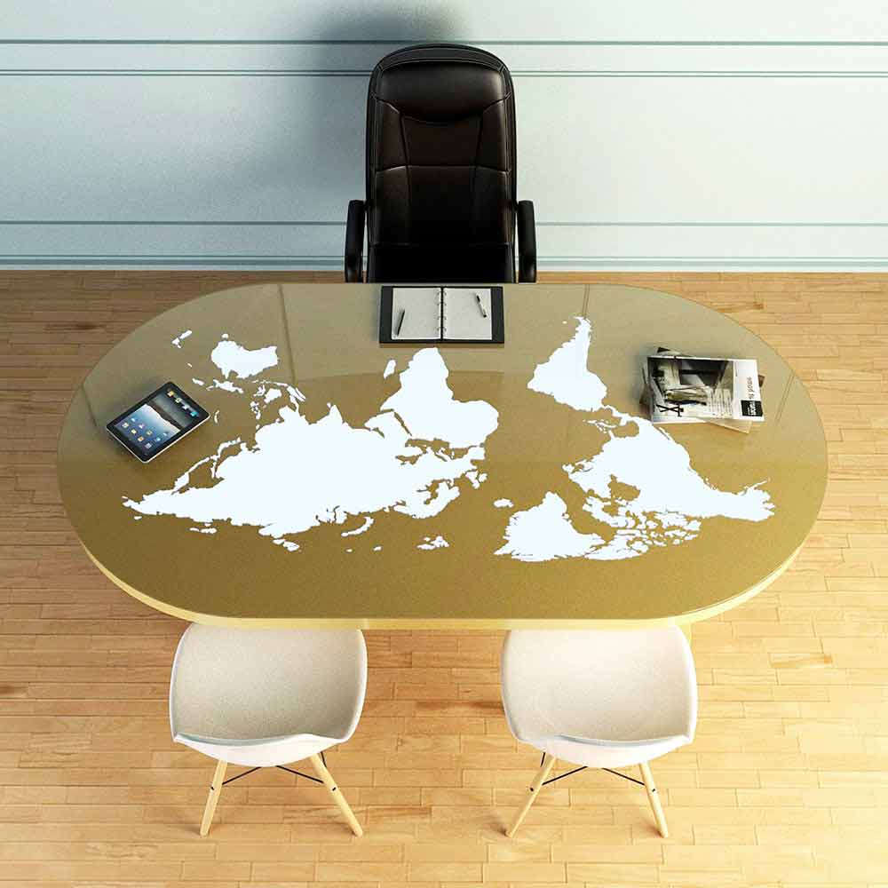 Pontida este o masa de birou cu un design ultramodern; din Solid Surface® și blat din sticlă unde este reprezentată întreaga lume care, datorită prezenței LED-urilor, se aprinde și își schimbă culoarea după cum doriți.