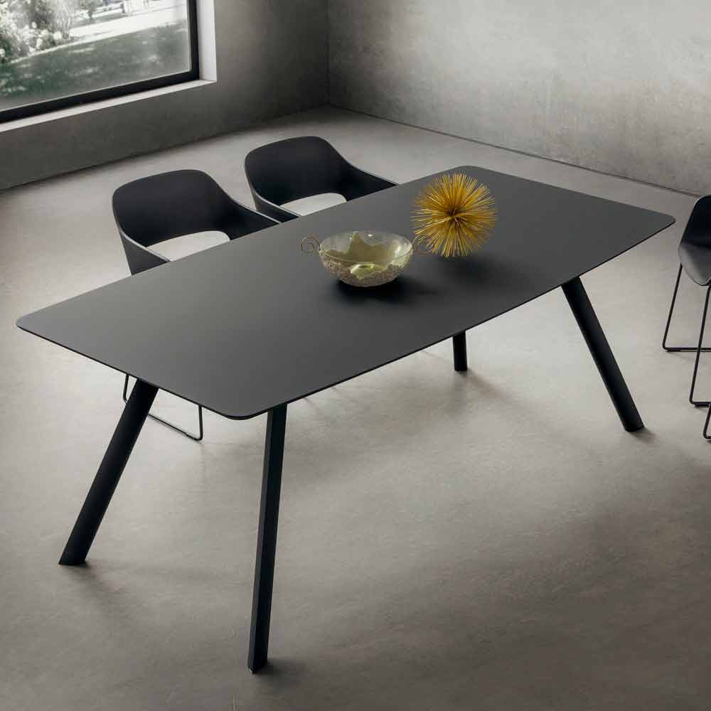Masa de sufragerie din fenix stratificat si aluminiu periat Made in Italy.
