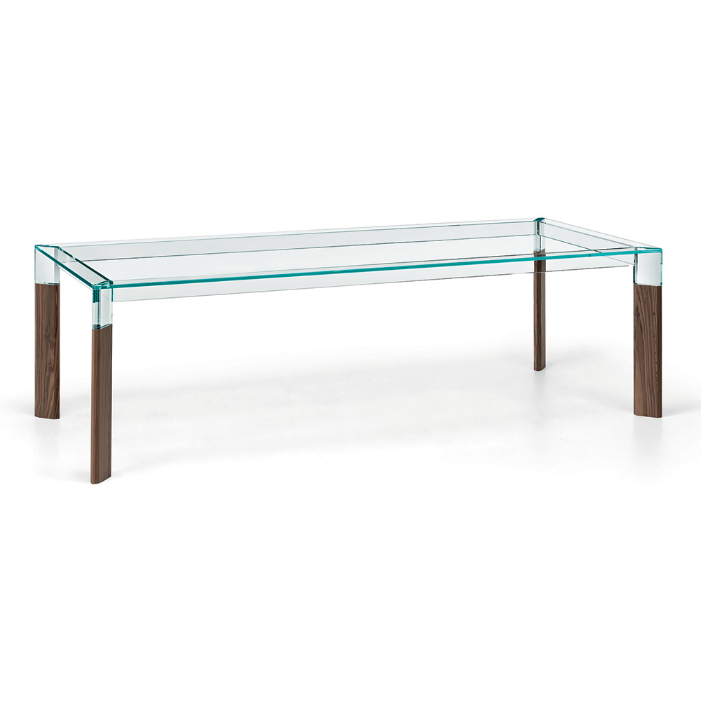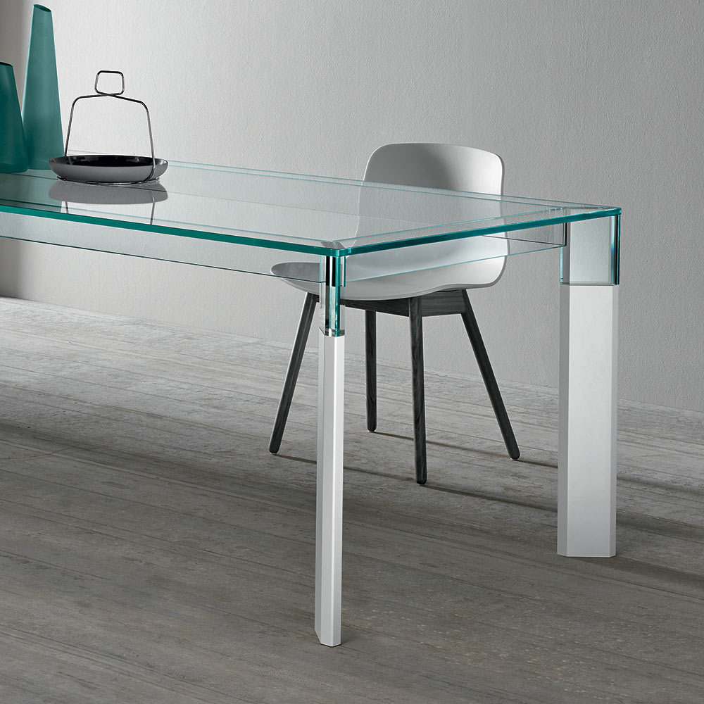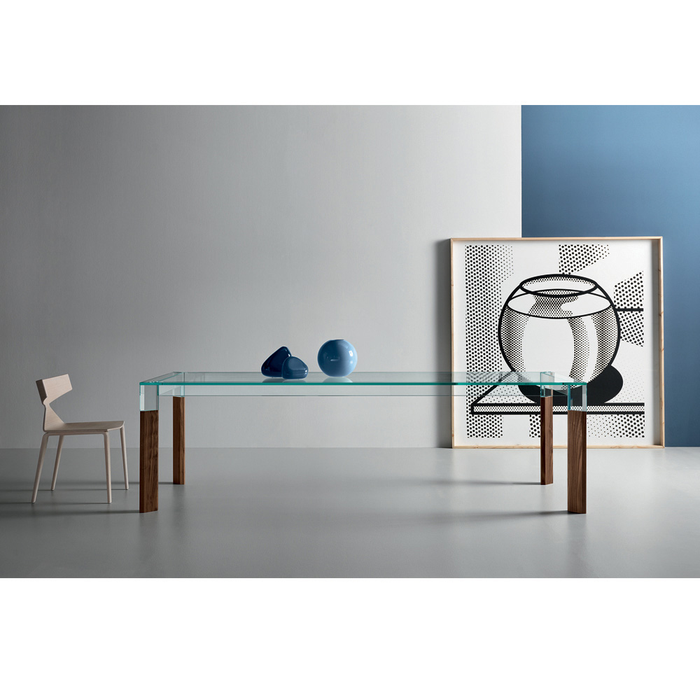 Masa de bucatarie cu blat din sticla si picioare din lemn Made in Italy.