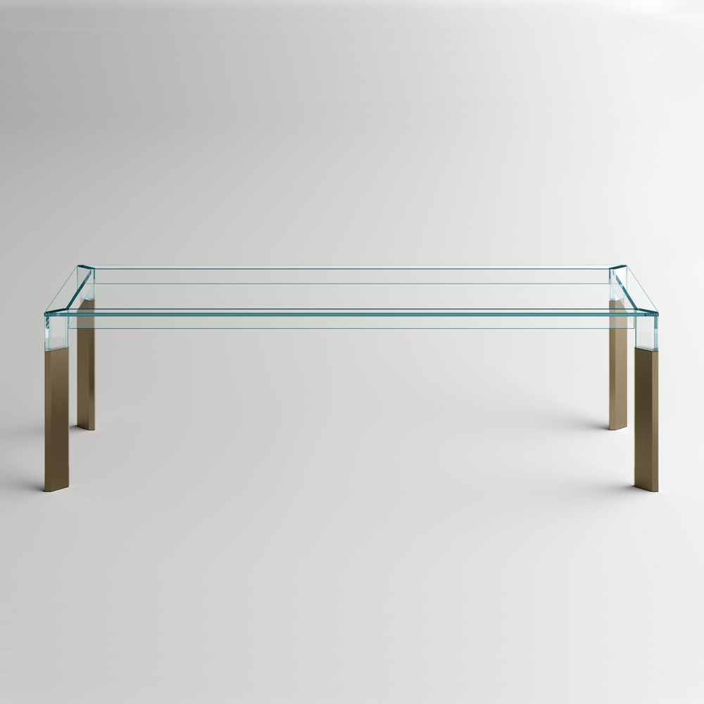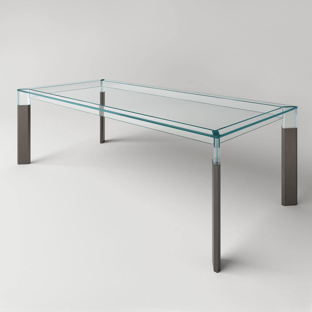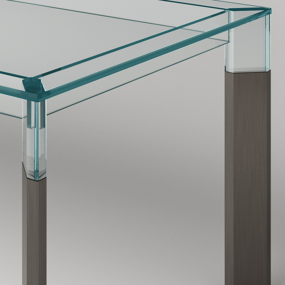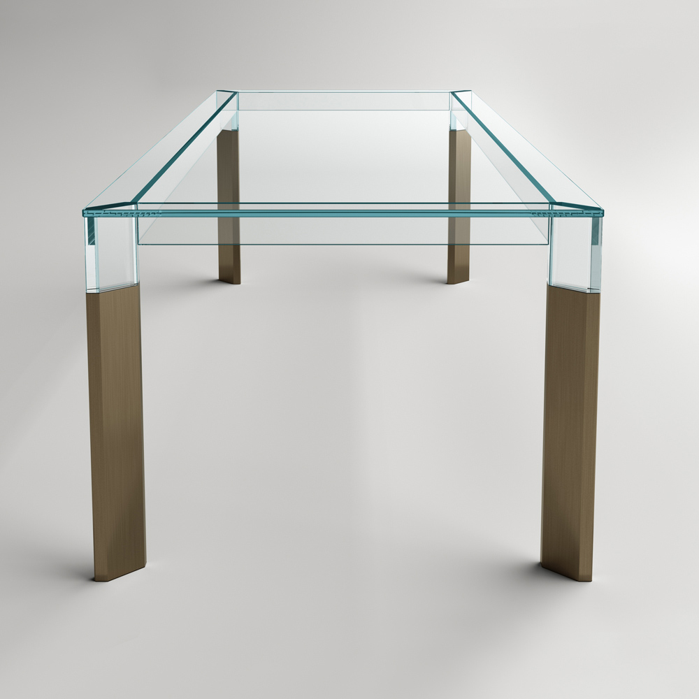 Masa de bucatarie cu blat din sticla si picioare din lemn Made in Italy.