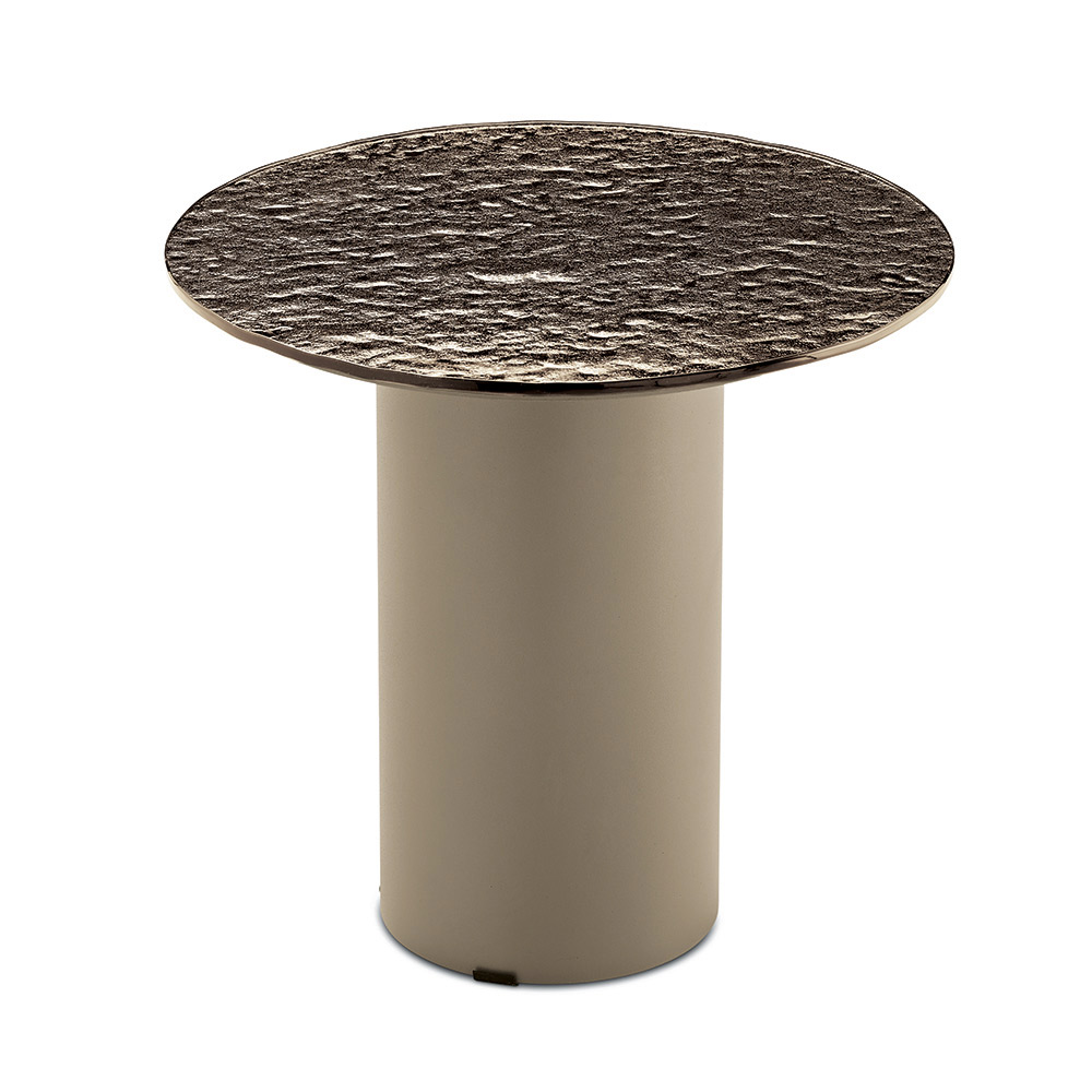 Structura are o bază cilindrică din metal vopsit , solidă, dar ușoară din punct de vedere vizual, care echilibrează blatul. Acest contrast între volumele solide și suprafețele subțiri creează o estetică modernă și elegantă, perfectă pentru spații sofisticate.