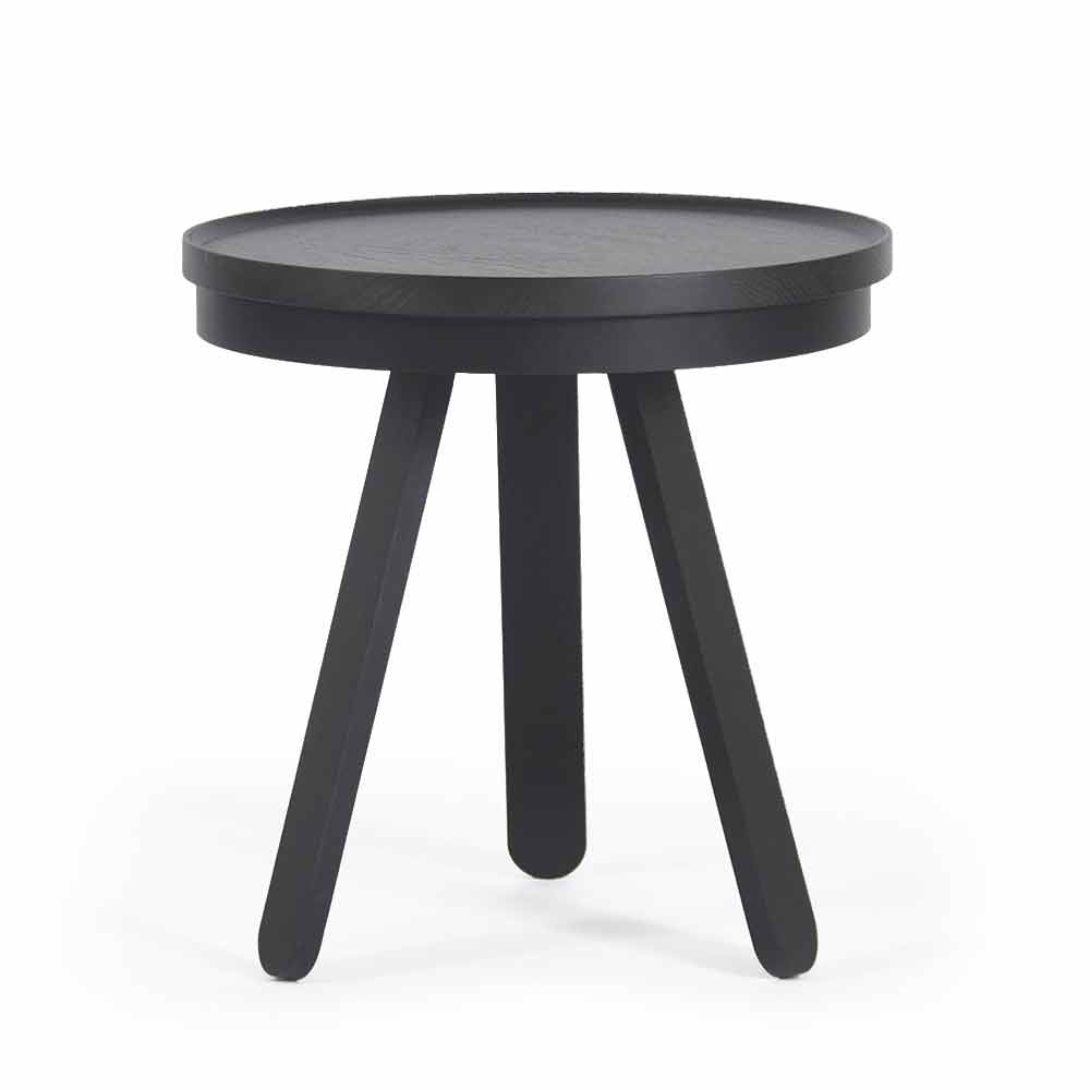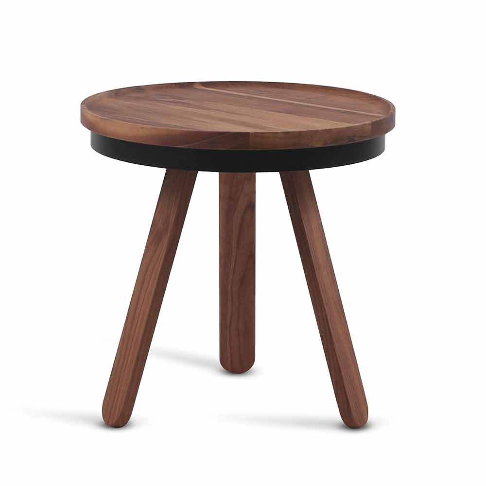 Masuta de cafea din lemn masiv si otel cu blat rotund.