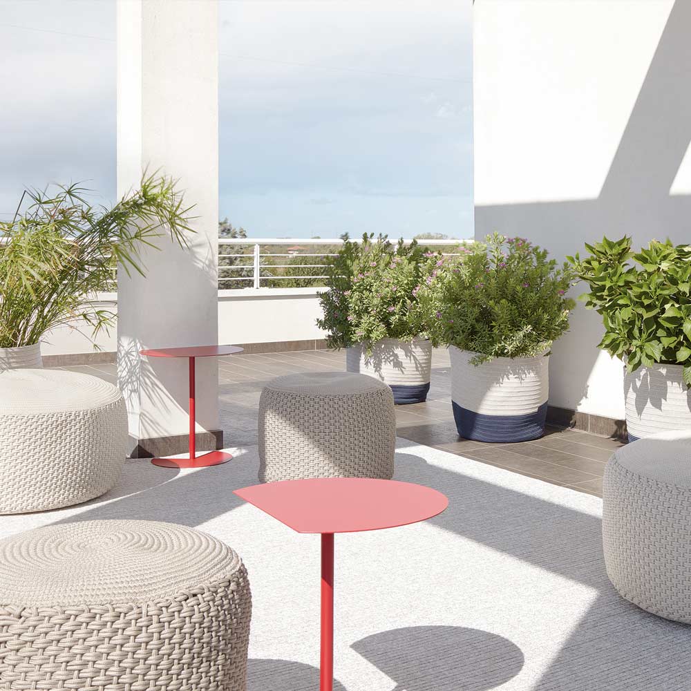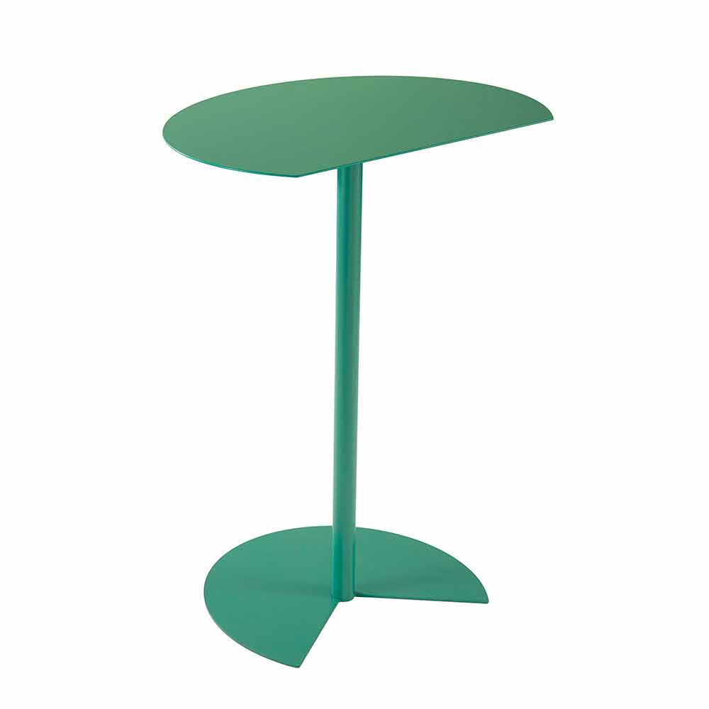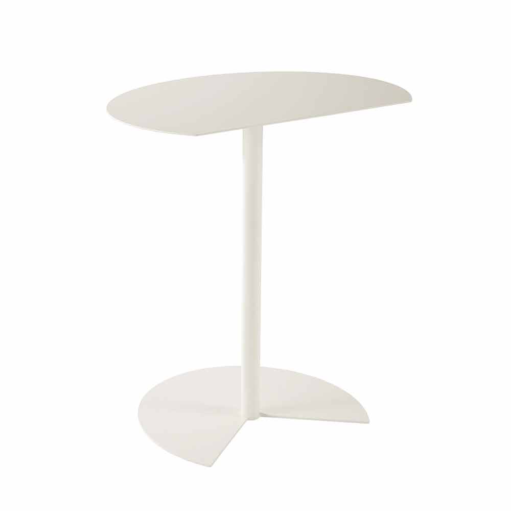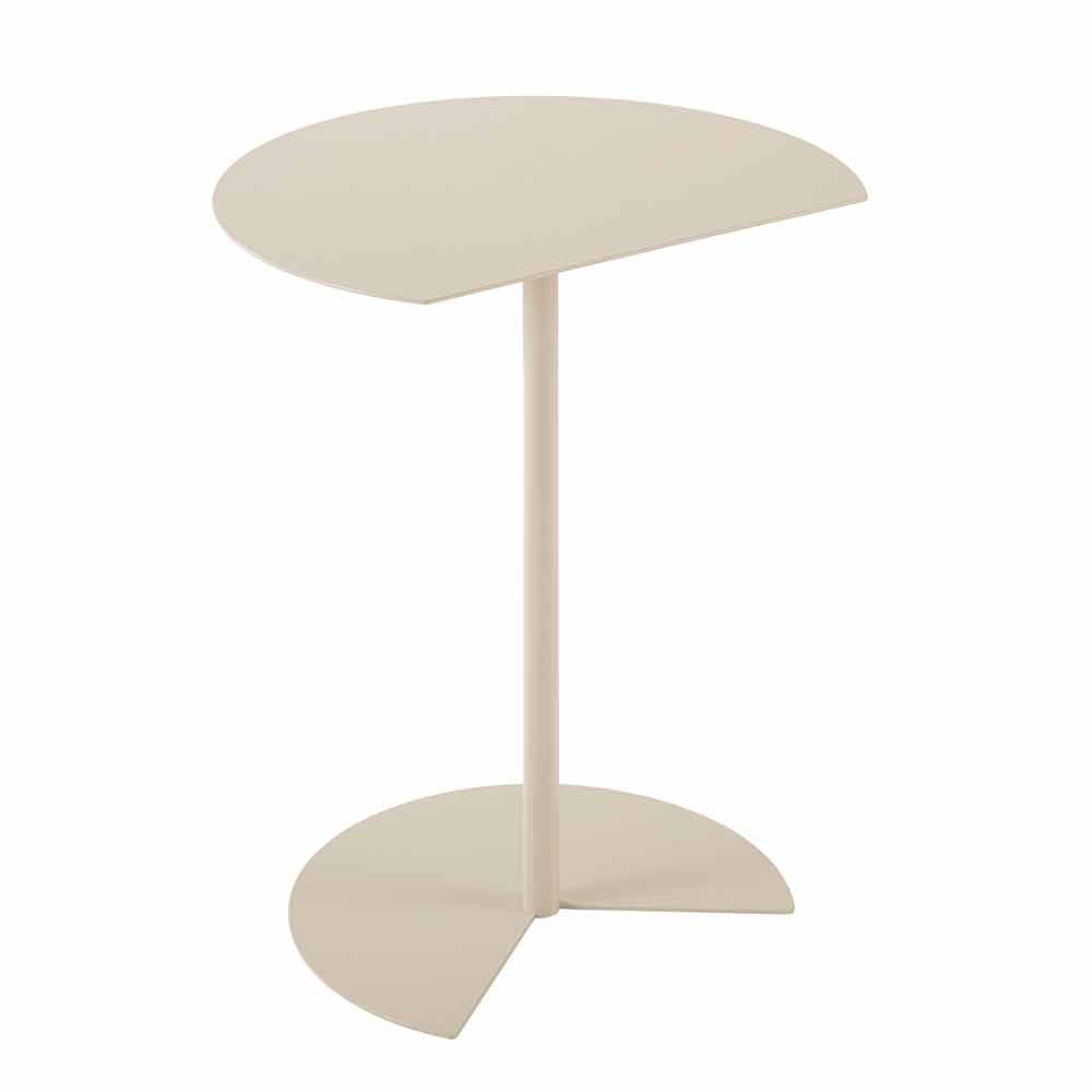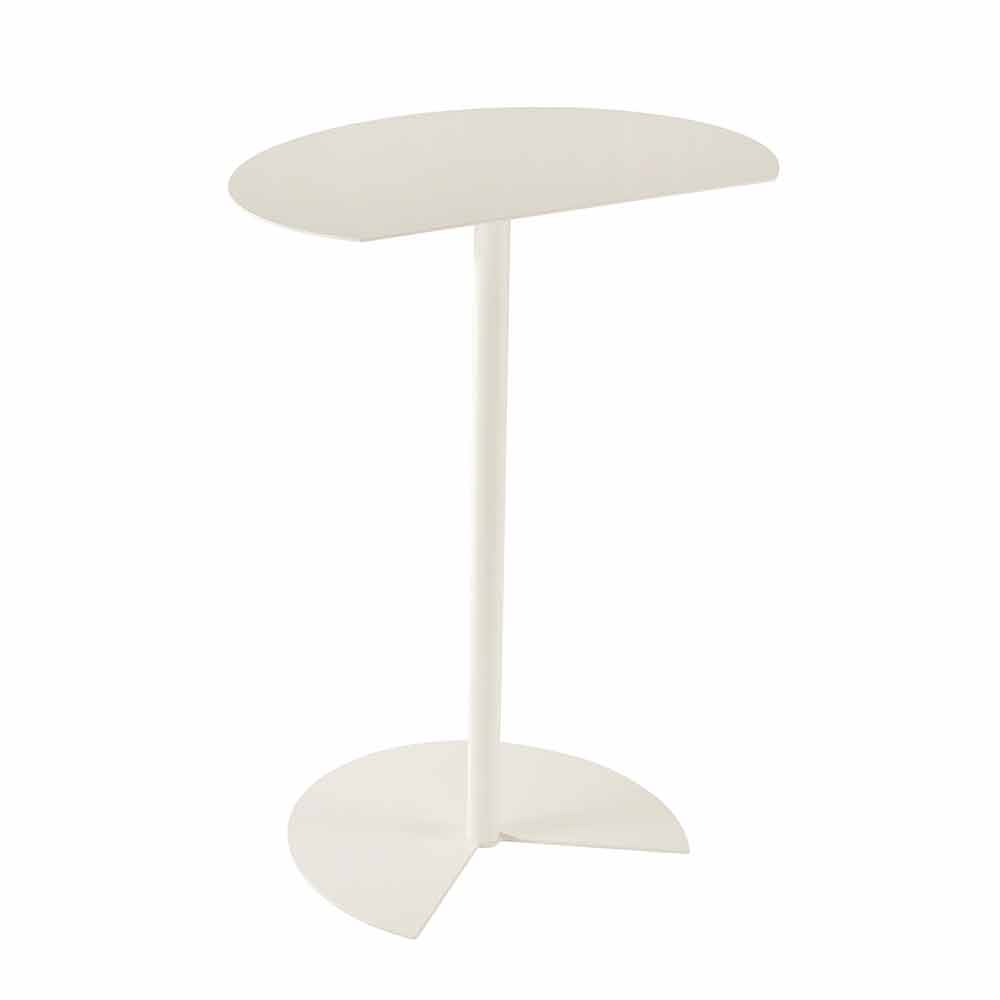 măsuță de cafea în aer liber se caracterizează prin suprafața de susținere care reamintește rotunjimea cercului rupt de o tăietură curată, astfel încât să poată fi atașată la un perete, pentru a optimiza spațiul sau pentru a fi cuplată la una similară, la una extrem de funcțională