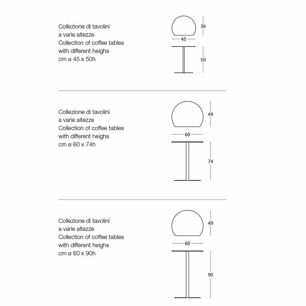 Masuta de cafea de design din metal in diverse culori si in 3 dimensiuni diferite, de lux made in Italy.