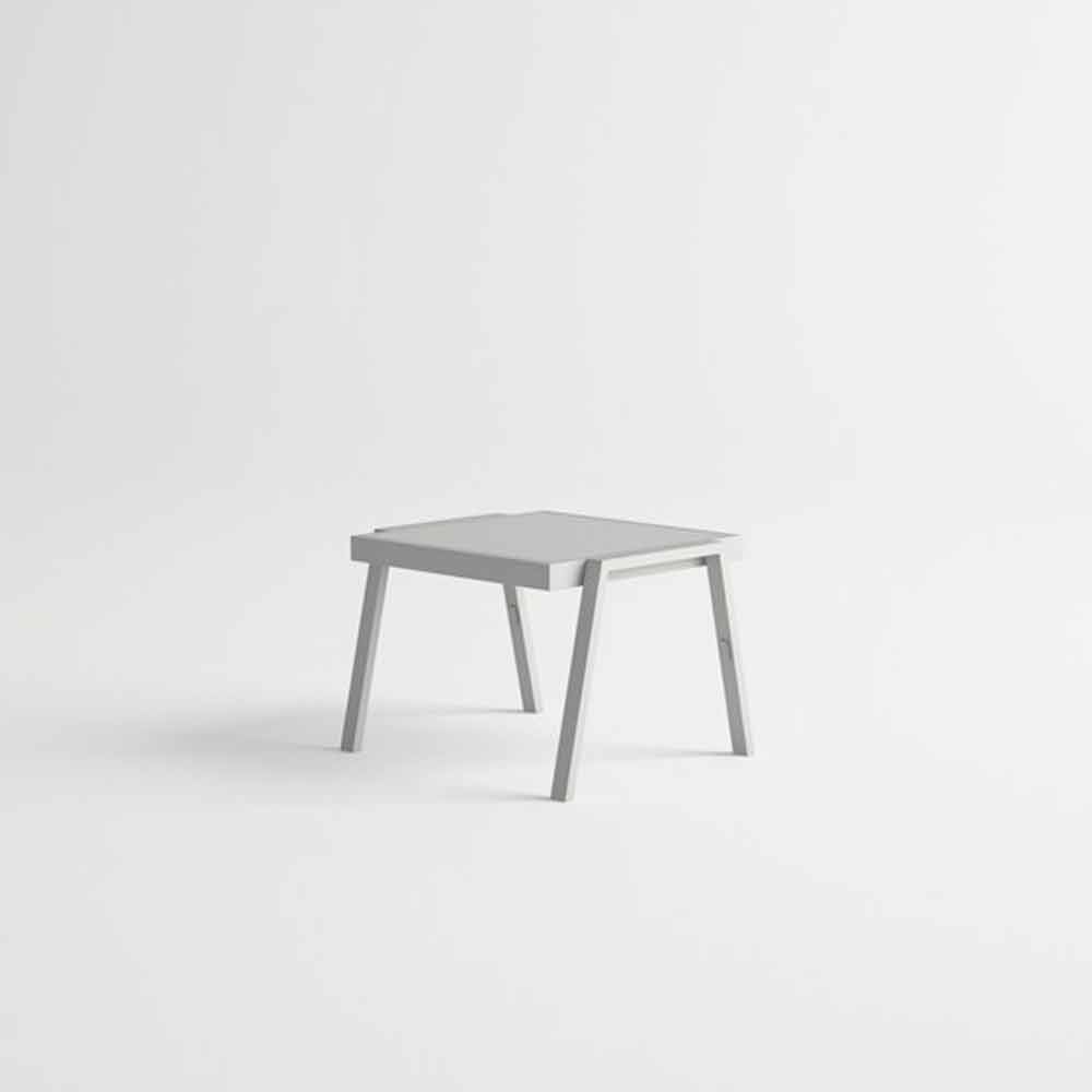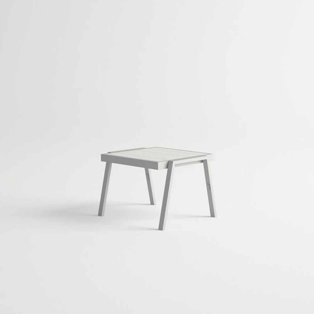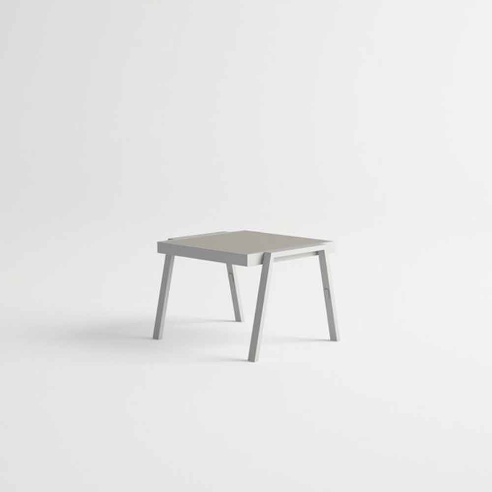 Masă de cafea pentru exterior, structură din aluminiu și blat HPL laminat, design modern și elegant.