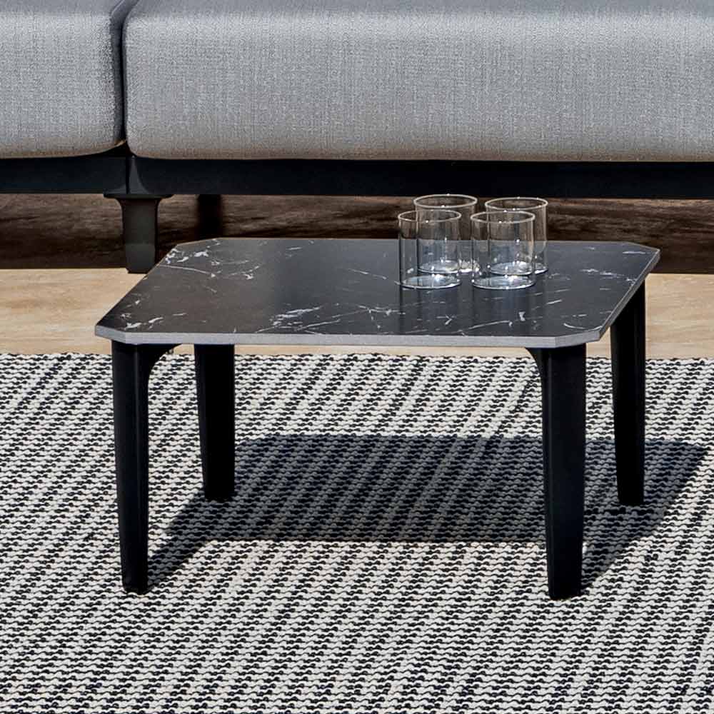 Măsuță de cafea joasă în aer liber din aluminiu și blat pătrat din gresie porțelanată, articol de înaltă calitate fabricat în Italia.