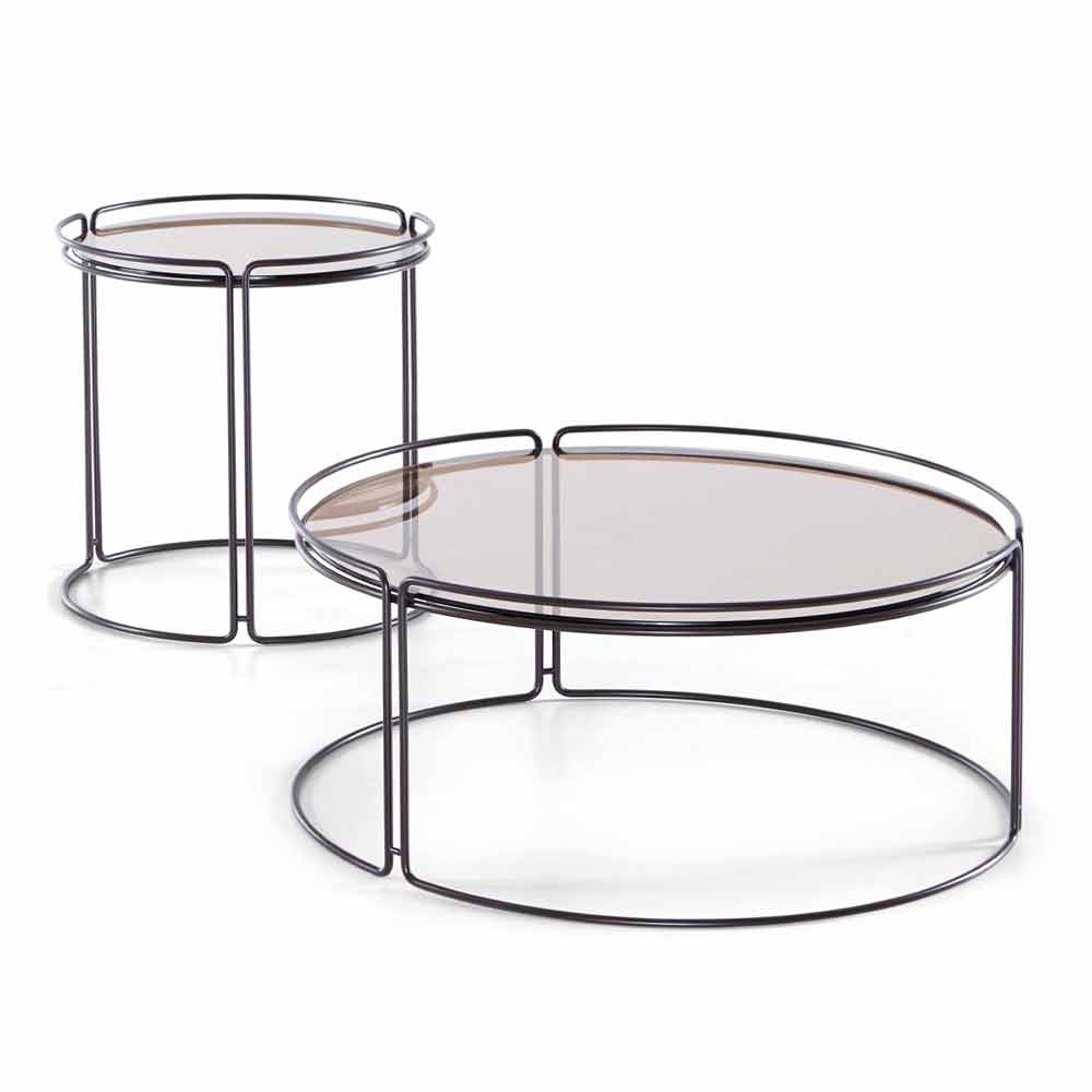 Masuta de cafea rotunda din metal cu blat din sticla Fabricat in Italia, de inalta calitate.
