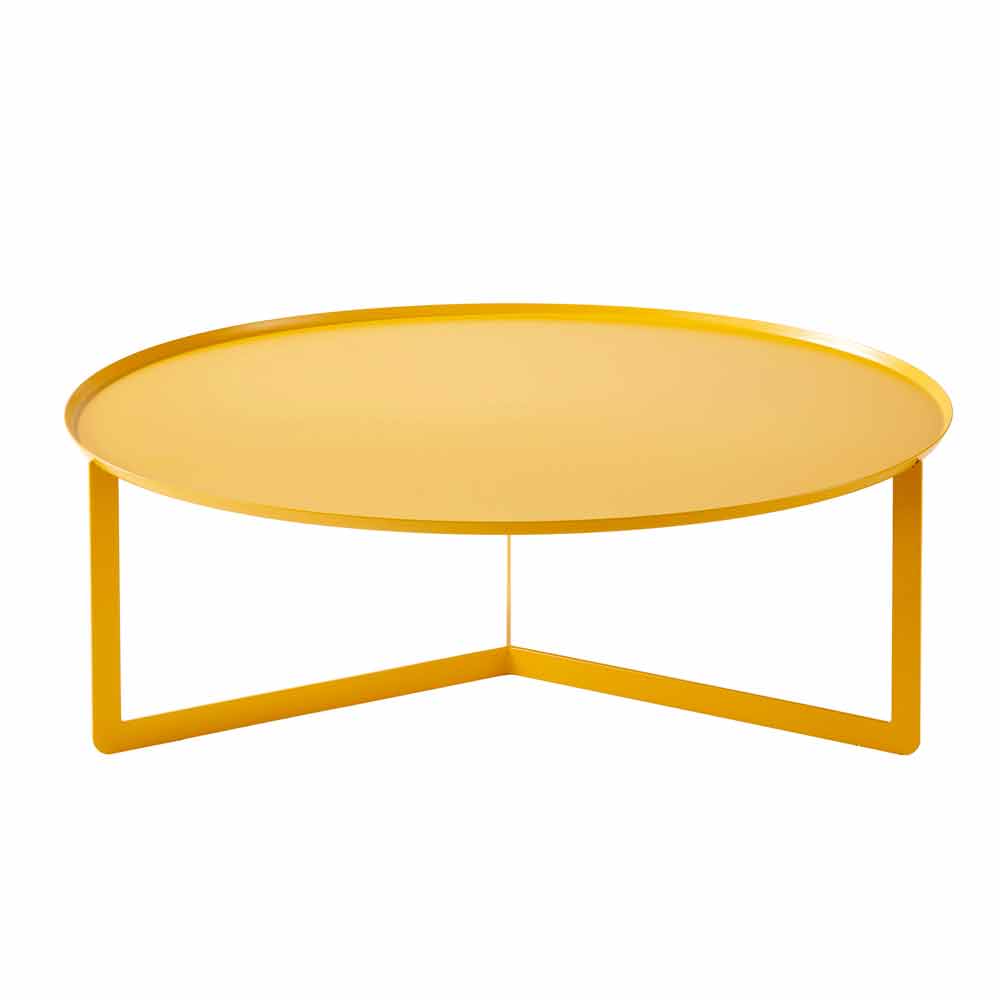 Masa rotunda de gradina moderna, din noroi sau metal galben maya, lux fabricat in Italia.