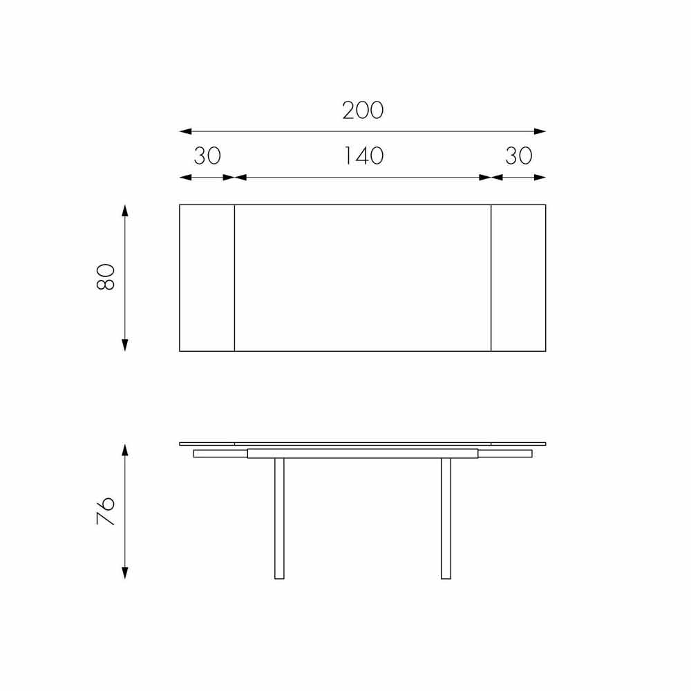 Nardo este o masă extensibilă de până la 200 cm cu dimensiunile: l.140 / 200 x d.80 x h.76 cm.