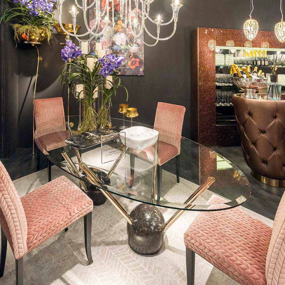 masa de design oval cu blat de sticla de 100% Made in Italy Zoe
