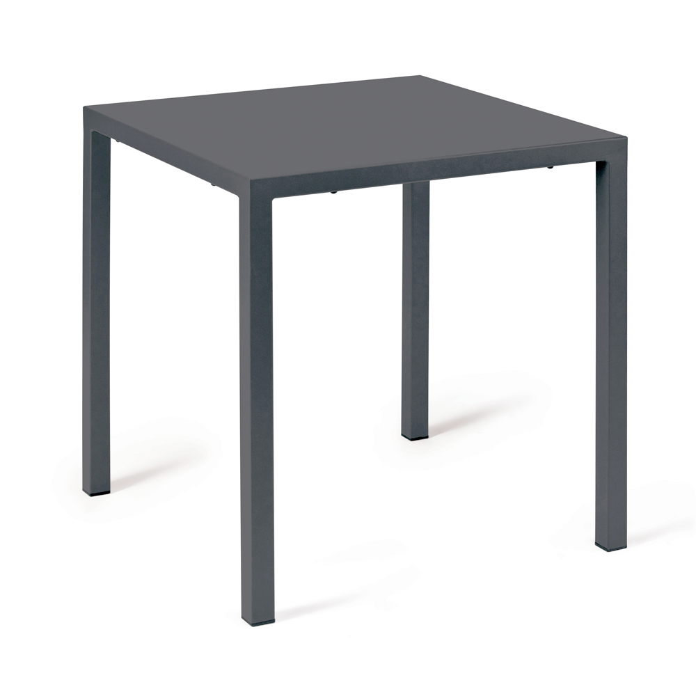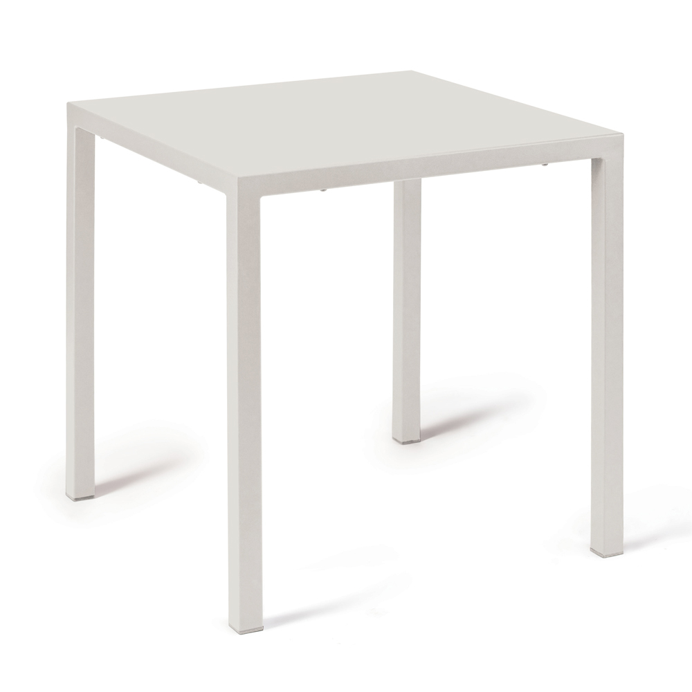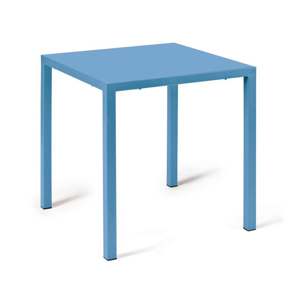 Masă de exterior stivuibilă și autonivelantă , fabricată în Italia, în întregime din oțel galvanizat, cu picioare pătrate și 4 picioare normale.