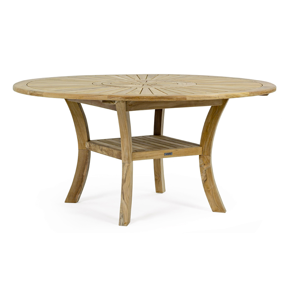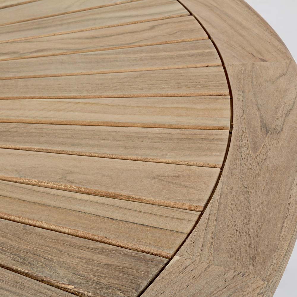 Masă de exterior de calitate, din lemn de tec, cu blat central pivotant.