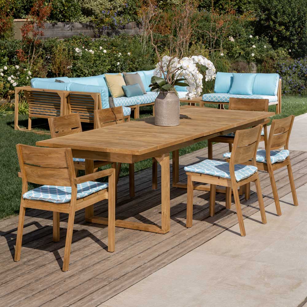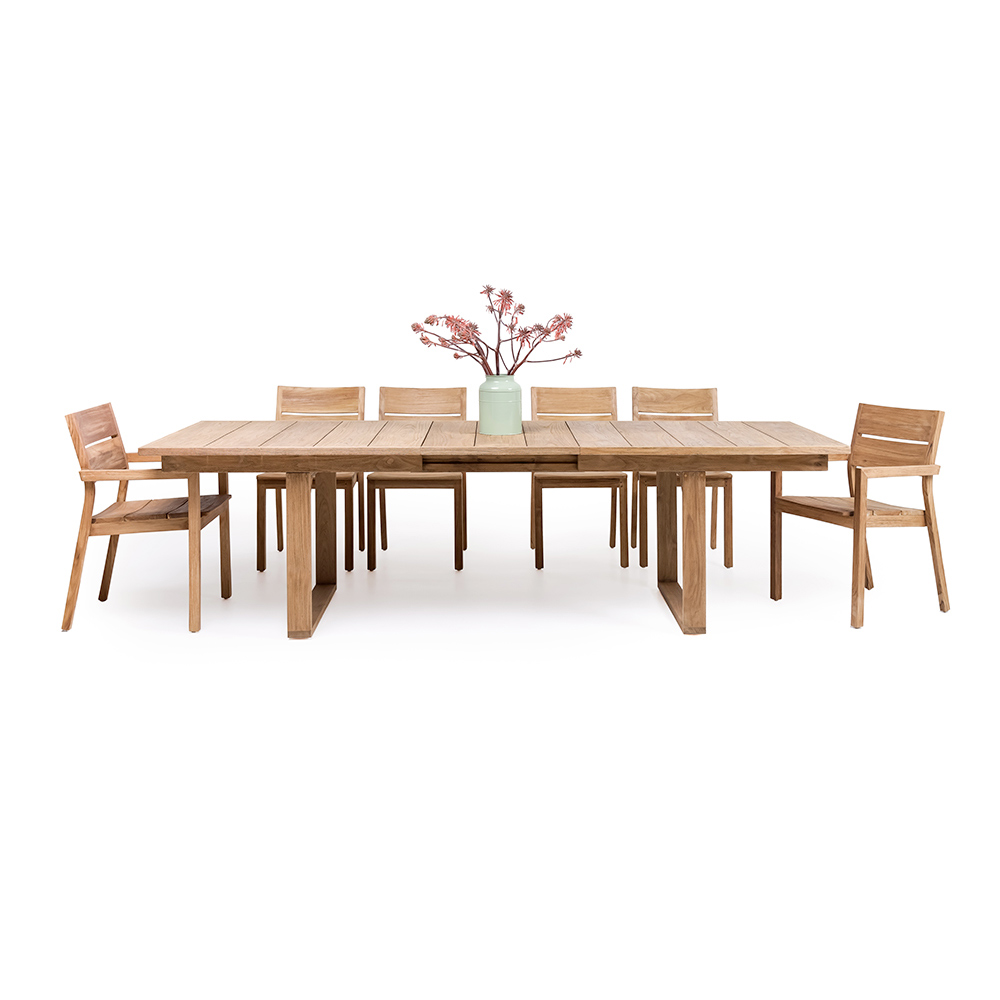 piesă simplă, dar armonios proporționată , potrivită pentru orice decor exterior, cum ar fi terase, verande, grădini sau lângă piscină, creând o atmosferă captivantă. Lemnul de tec folosit în construcția sa garantează
