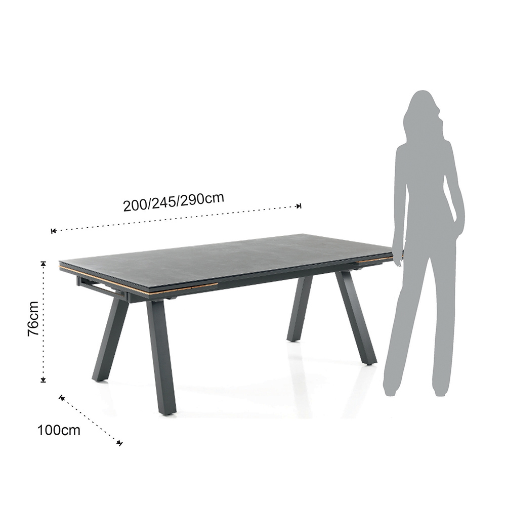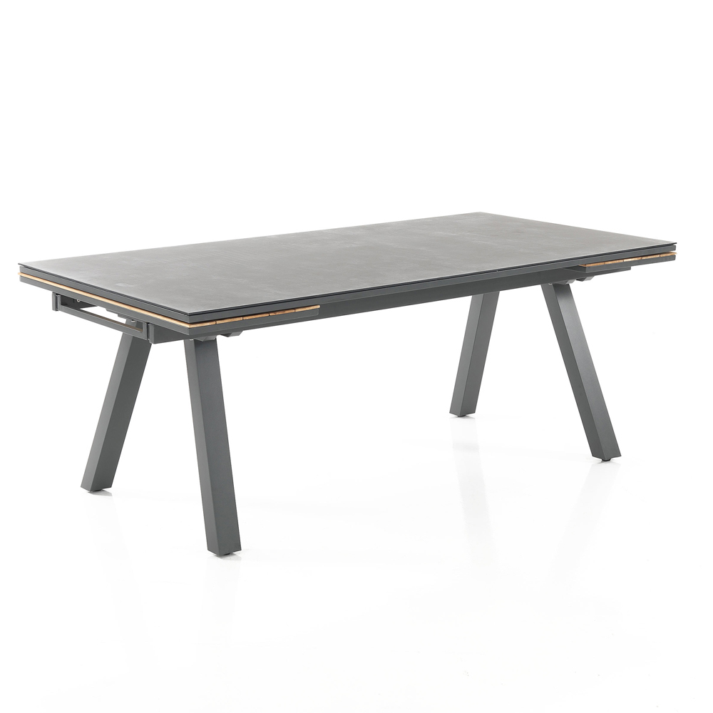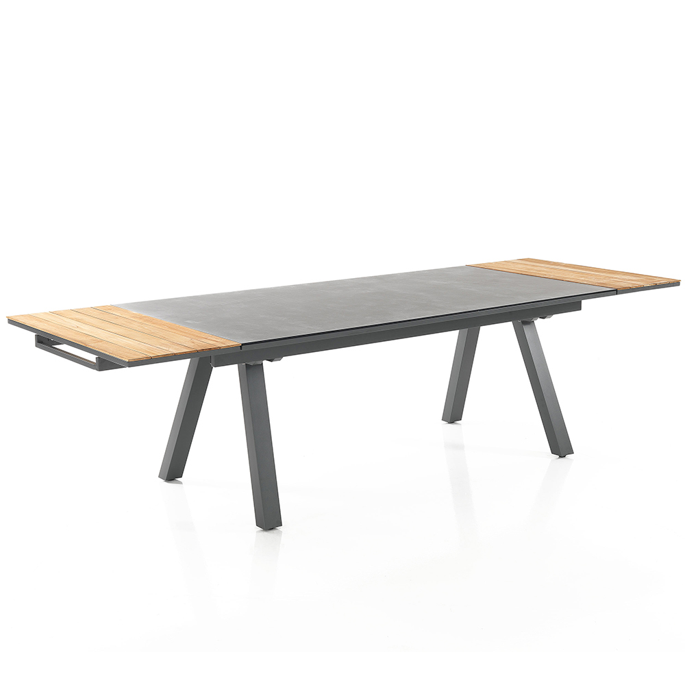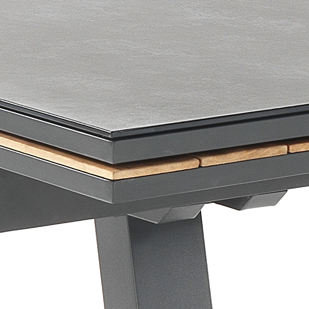 Această masă de grădină extensibilă este o adevărată expresie a versatilității și stilului . Designul modern și liniile curate se îmbină cu eleganța extensiilor din lemn de tec, creând un contrast vizual sugestiv care sporește frumusețea mediilor în aer liber contemporane . Construcția robustă din aluminiu oferă acestei mese o stabilitate impecabilă și durabilitate pe termen lung .