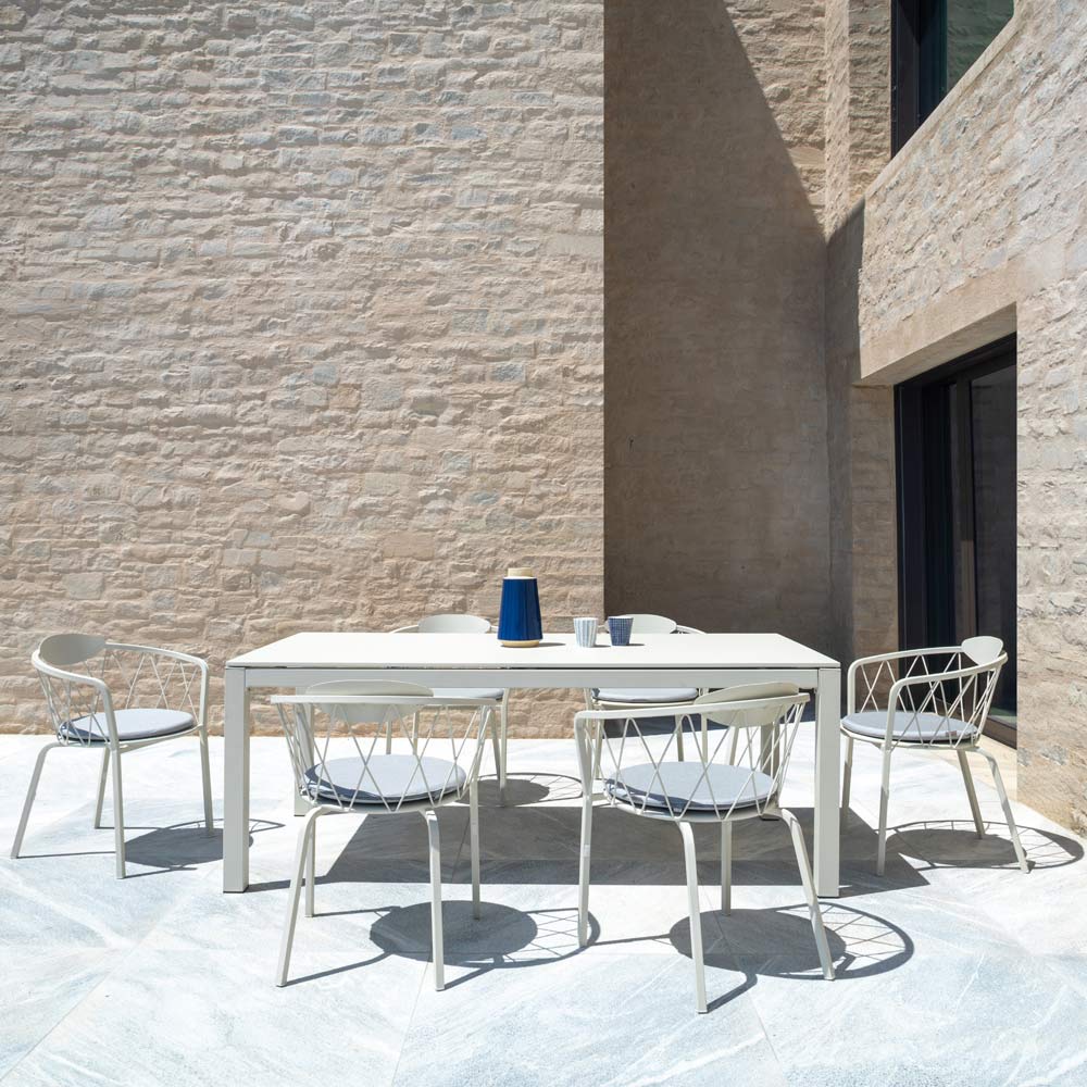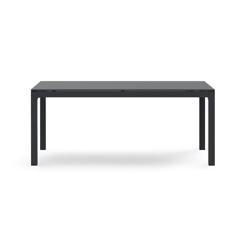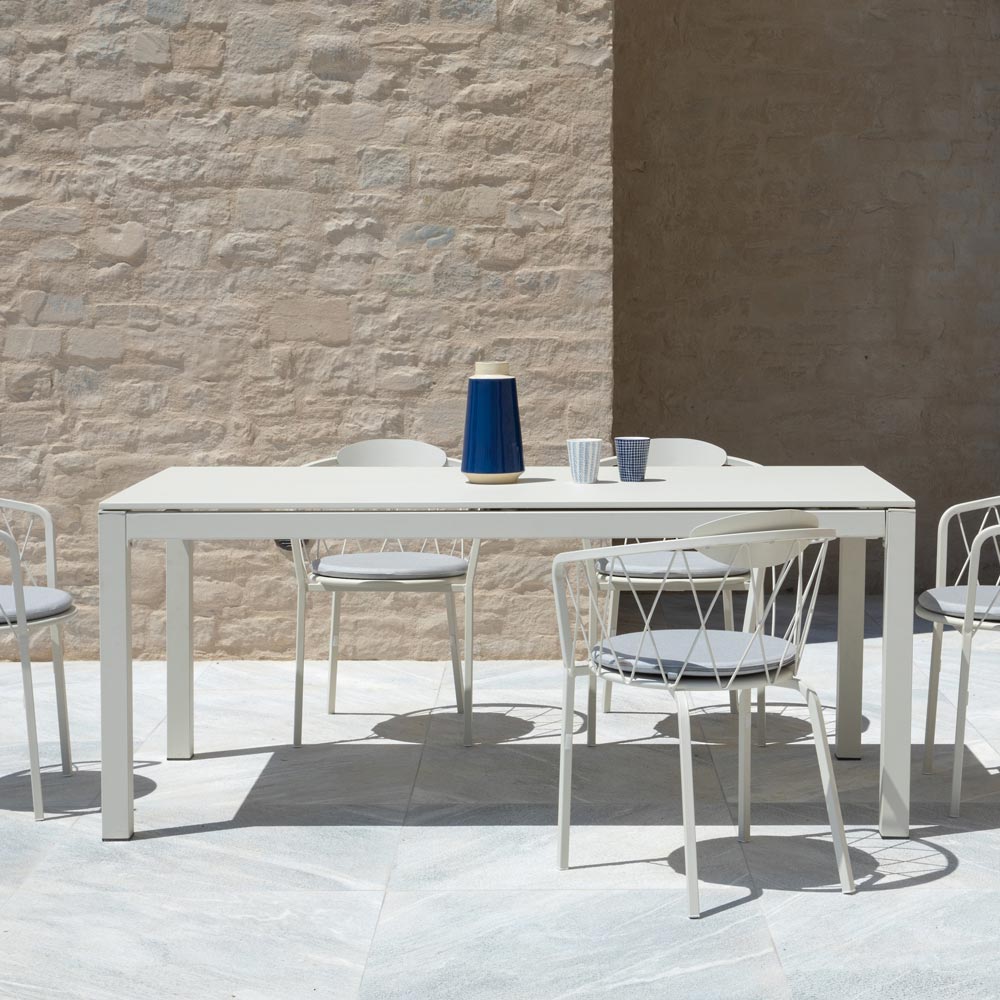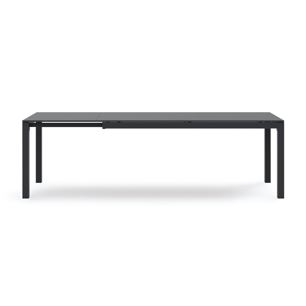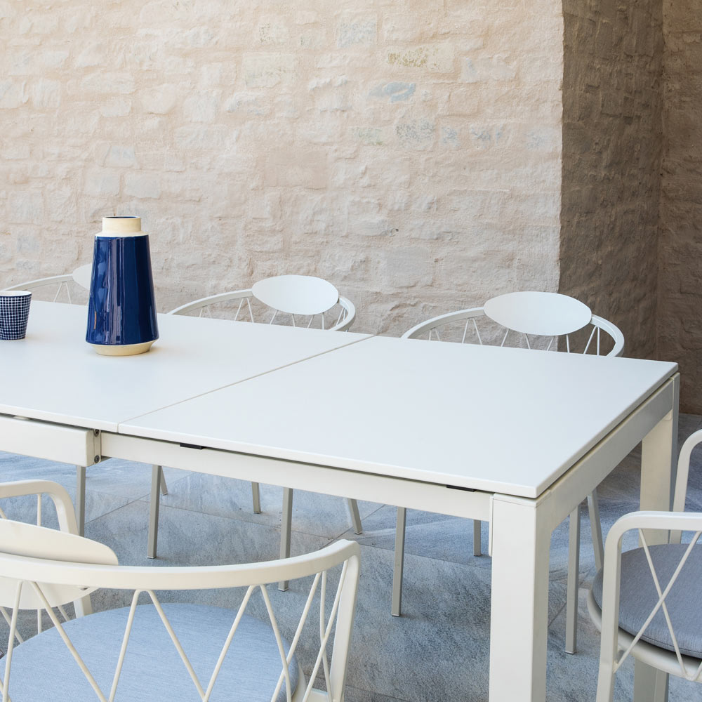 Masă extensibilă pentru exterior din fontă galvanizată vopsită în câmp electrostatic, fabricată în Italia.