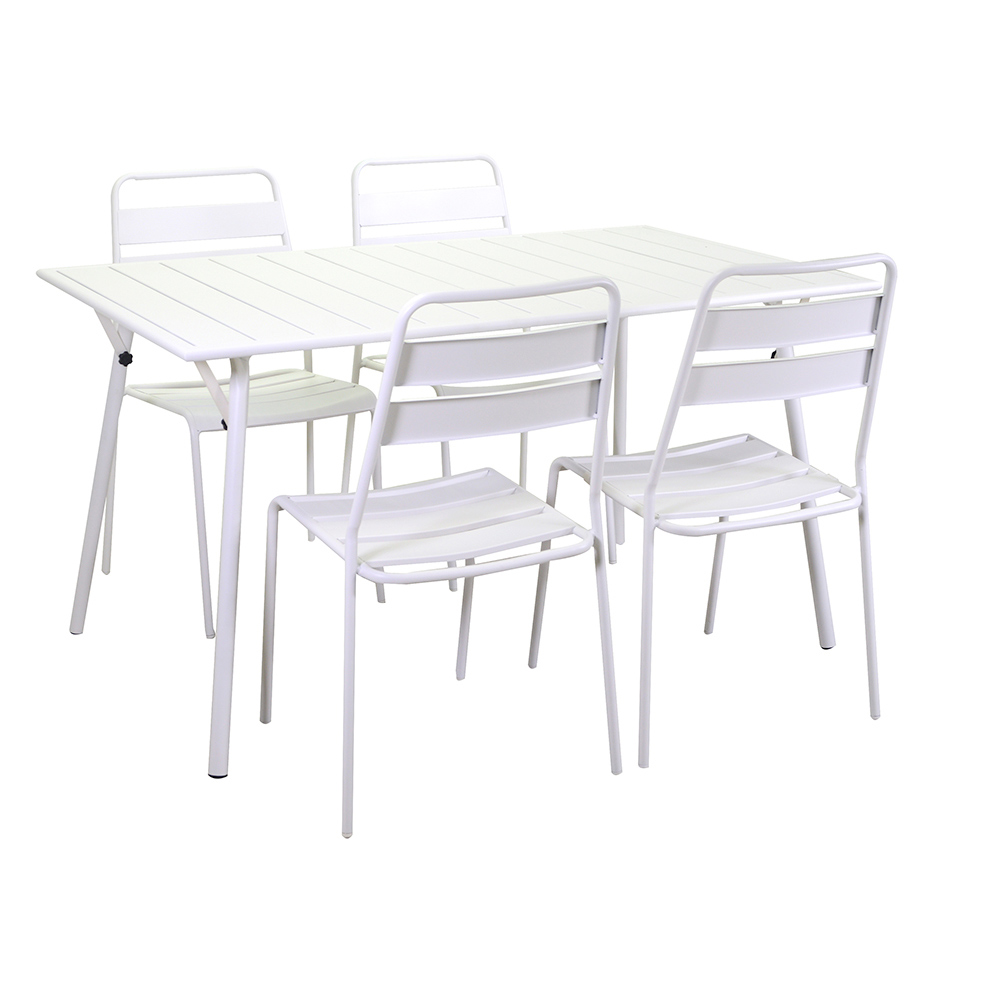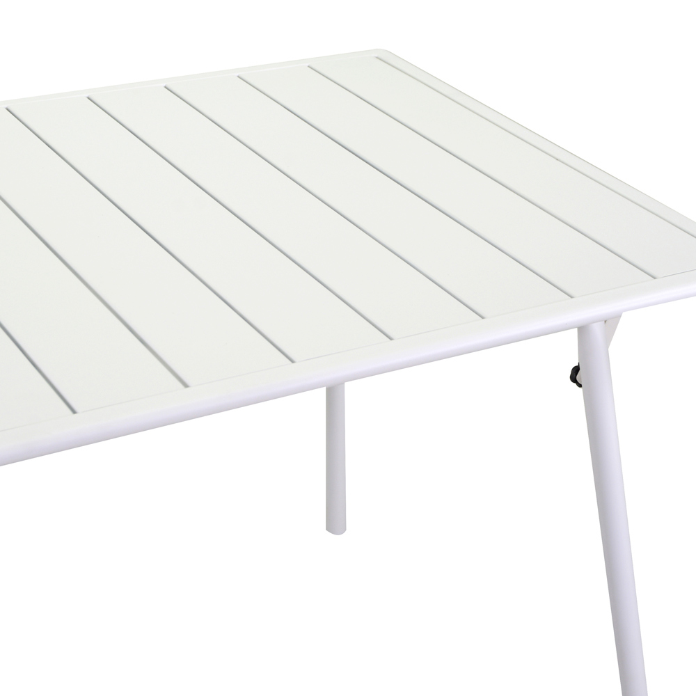 Realizată cu un cadru metalic robust, această masă asigură durabilitate și stabilitate, fiind ideală pentru utilizarea zilnică. Finisajul alb oferă un aspect proaspăt și curat, care se potrivește cu ușurință oricărei scheme de decor, de la modern la tradițional.