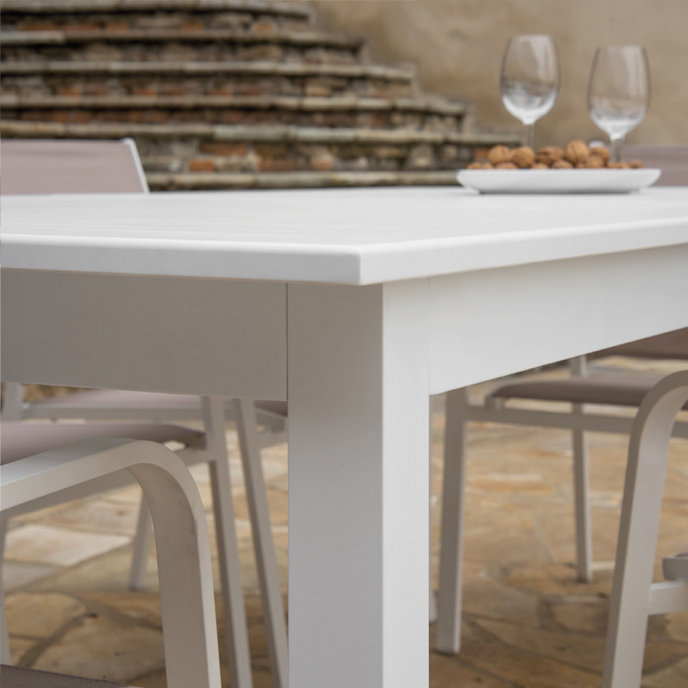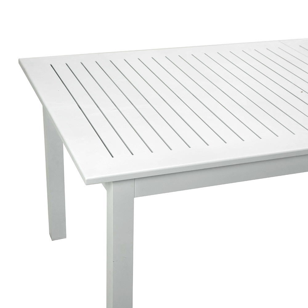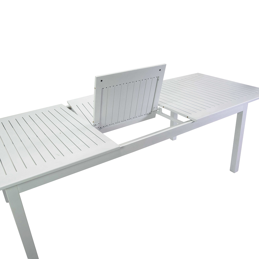 Această masă extensibilă din aluminiu este soluția perfectă pentru a găzdui atât mici reuniuni de familie, cât și mari sărbători în aer liber. Cadrul său din aluminiu asigură durabilitatea și stabilitatea , rezistând elementelor fără efort. Cu un design elegant și curat, se potrivește perfect în orice decor exterior, de la un patio modern la o grădină mai clasică.