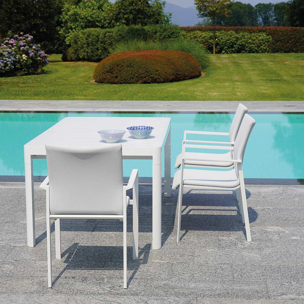 picioarelor glisante functionale. O piesă de mobilier a cărei estetică este marcată de volume echilibrate și forme clare care îi permit să amenajeze orice context exterior, atât domestic, cât și contract, cu