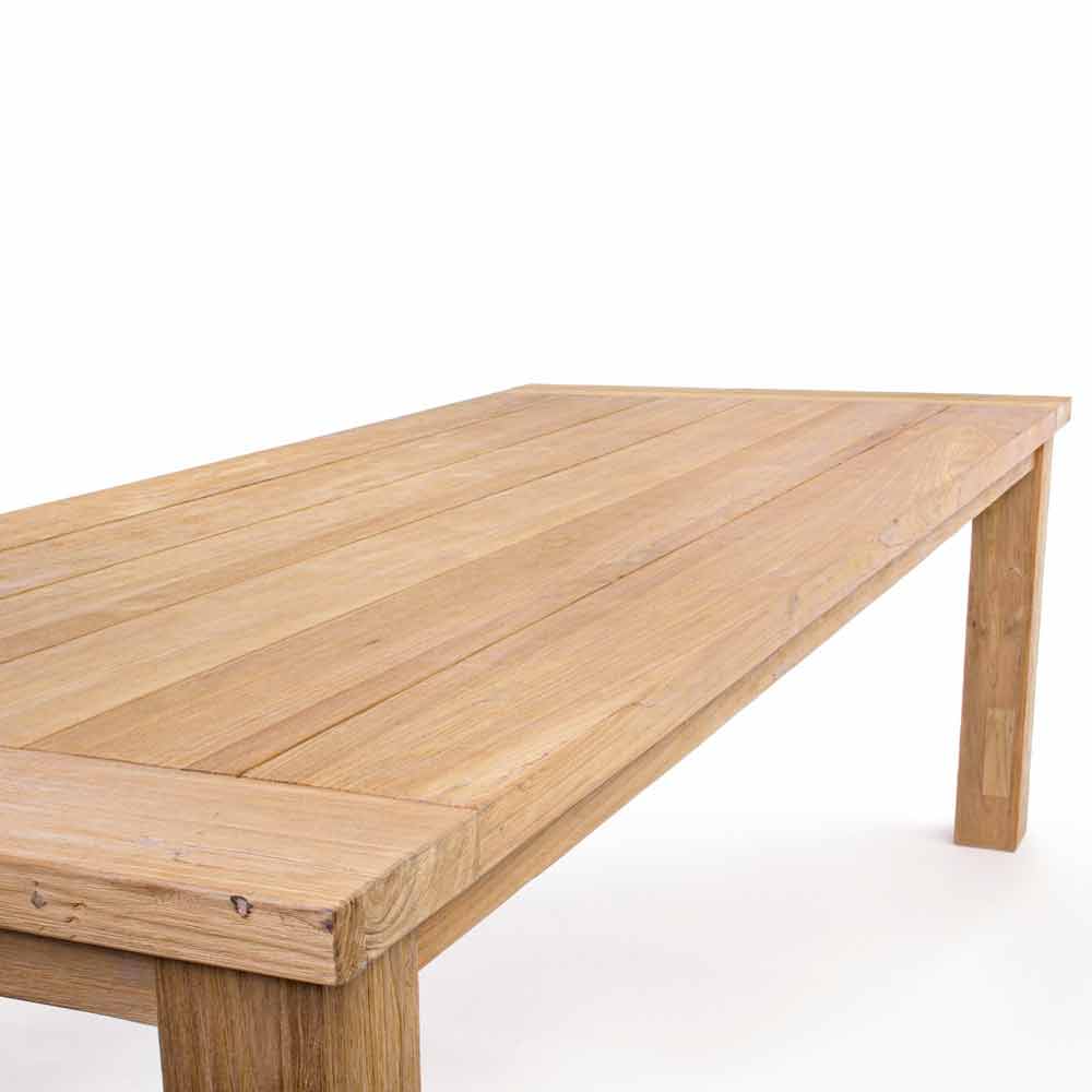 Masă de grădină dreptunghiulară din lemn de tec reciclat natural, pentru 8 persoane.