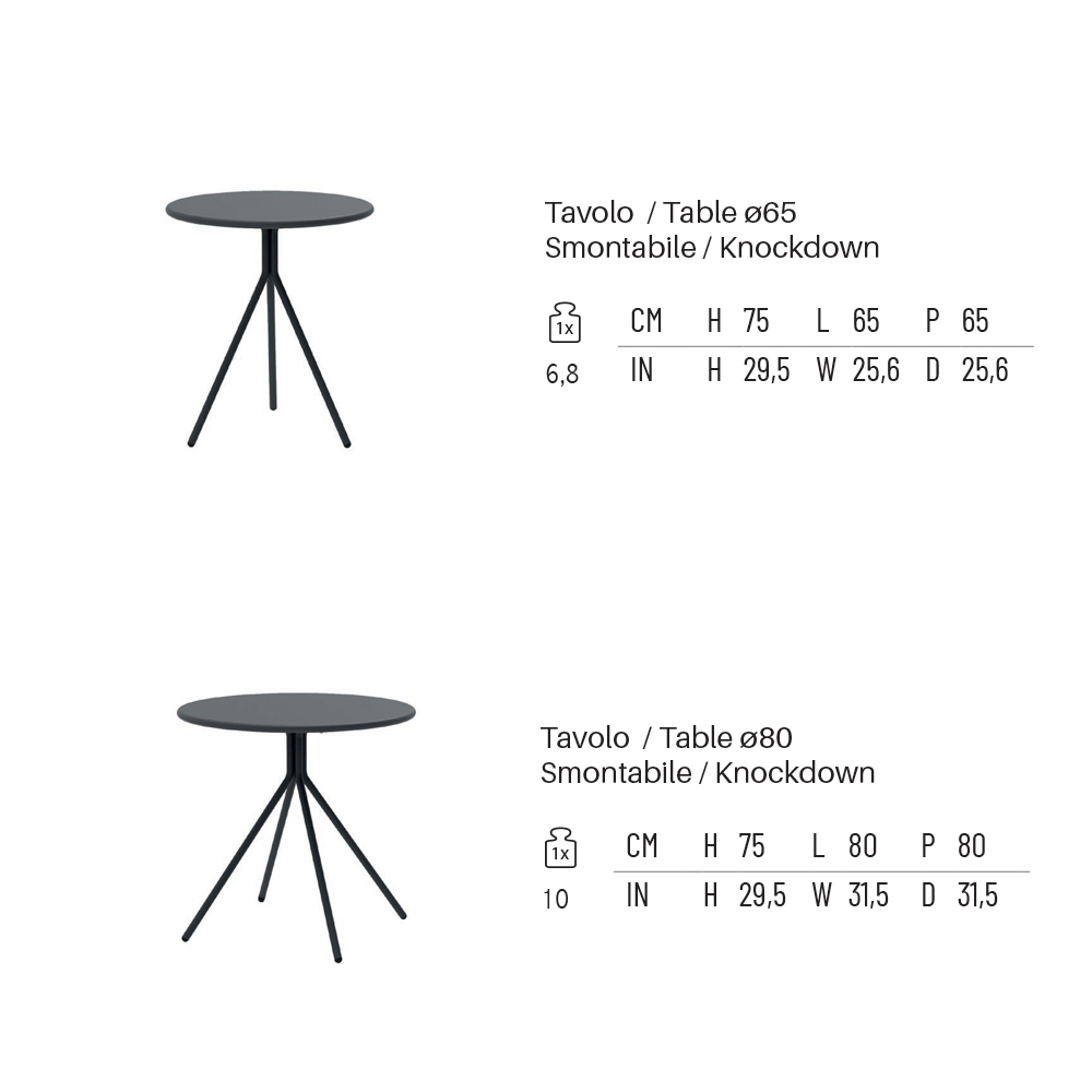 Masă rotundă de grădină cu cadru din oțel galvanizat 100% fabricată în Italia
