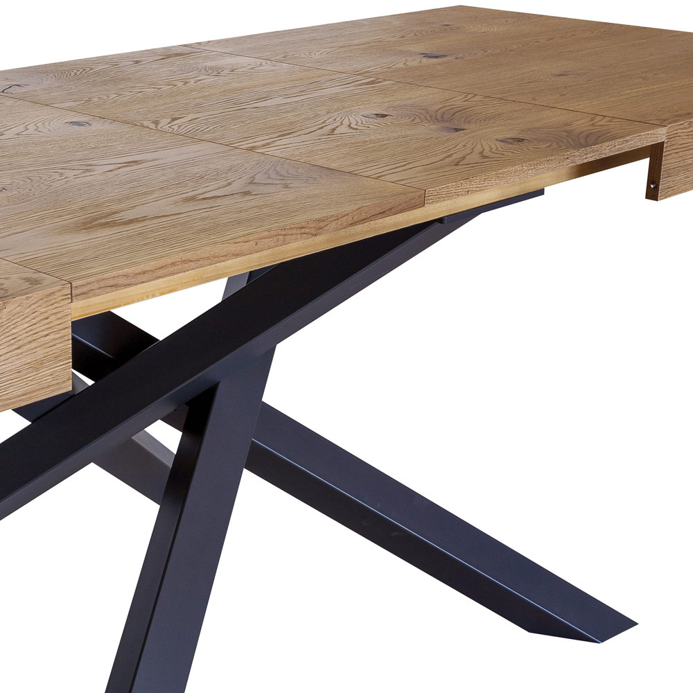 Masa de living extensibila din lemn masiv. Baza este din metal doar in finisaj culoare neagră. Produsul este realizat în întregime în Toscana cu utilizarea materialelor de înaltă calitate și vine cu 2 extensii de 50 cm fiecare, găzduite în interiorul blatului, ceea ce îl face versatil.