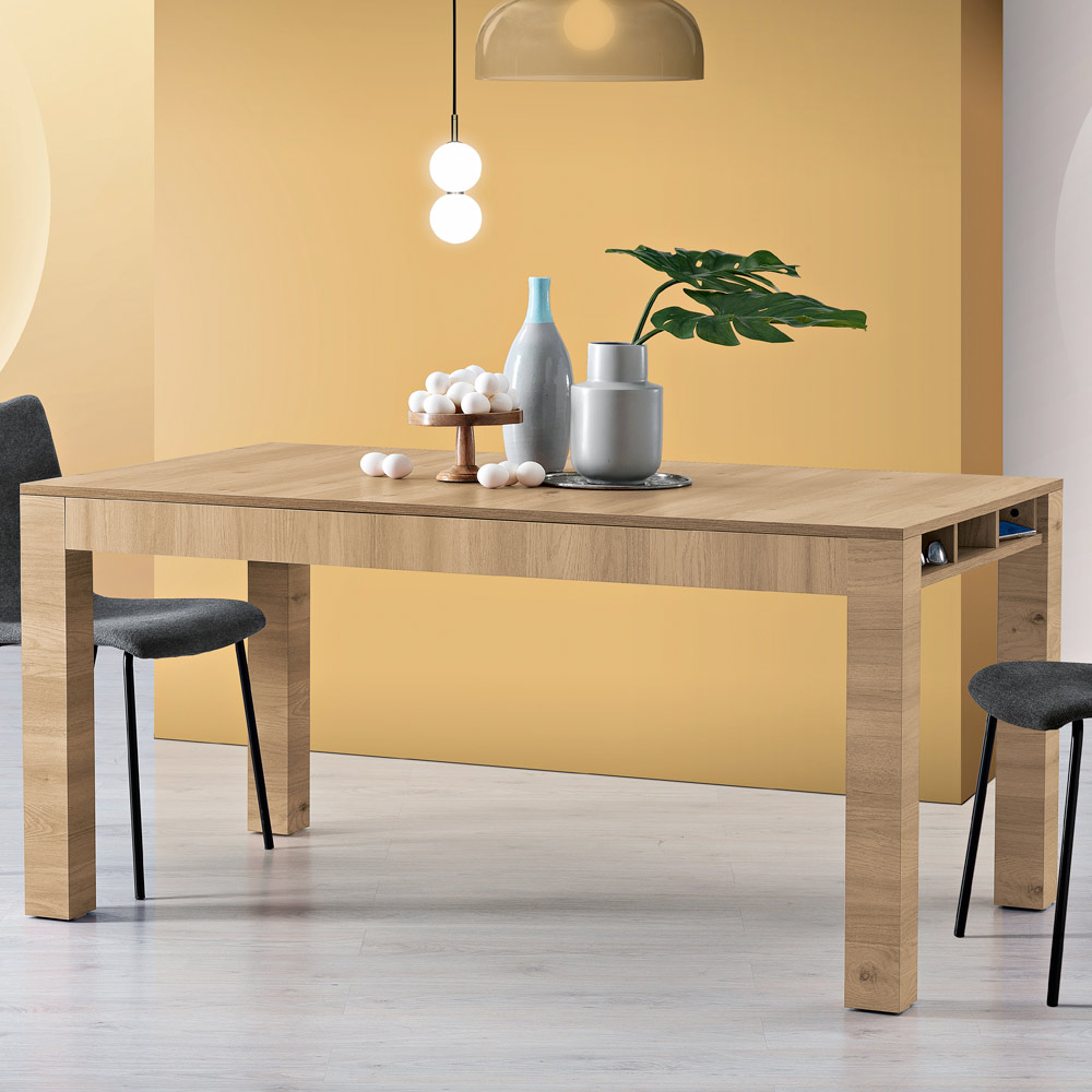 Căldura naturală a lemnului se întâlnește cu ingeniozitatea designului contemporan în această masă extensibilă . Finisajele nu sunt doar frumoase la vedere, dar ofera si o suprafata durabila rezistenta la utilizarea zilnica, perfecta pentru a gazdui de la micul dejun simplu de dimineata la cine rafinate cu prietenii.