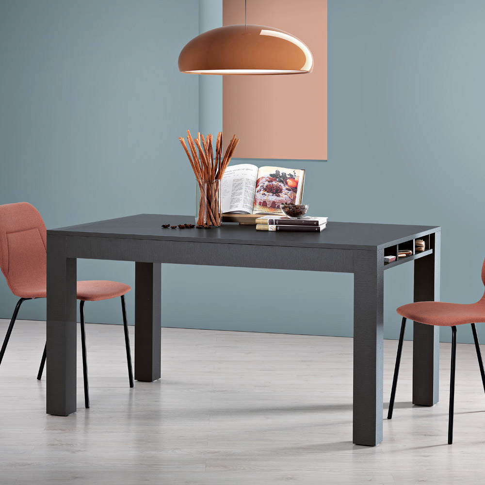 Mecanismul de extensie este neted și ușor de manevrat, conceput pentru a maximiza spațiul fără a sacrifica frumusețea estetică . Picioarele conferă soliditate vizuală și structurală și sunt o reamintire a calității artizanale care caracterizează cele mai bune produse fabricate în Italia .