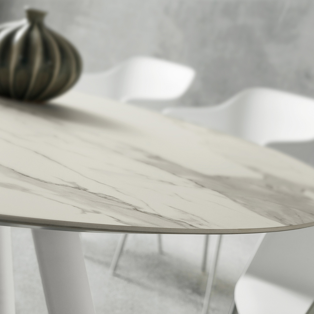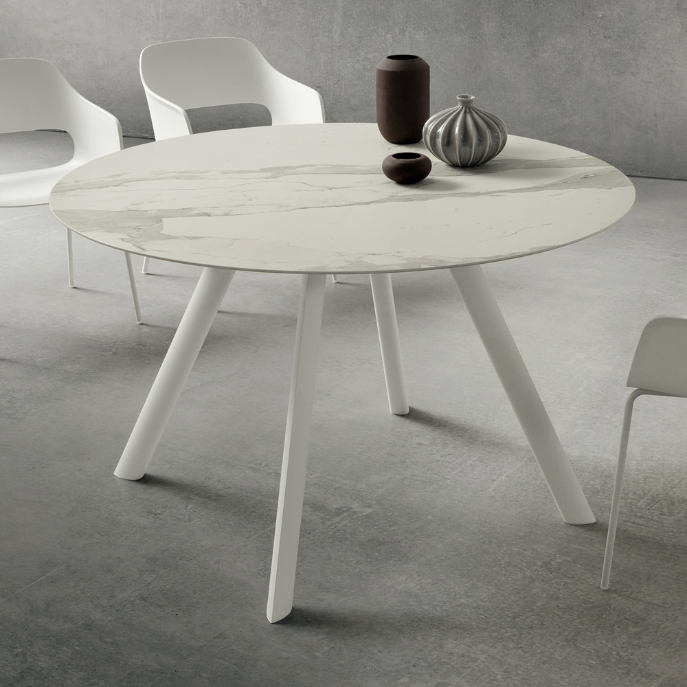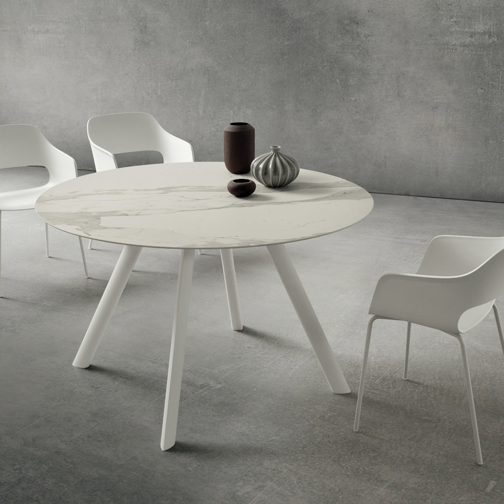 Masa de sufragerie de lux cu blat rotund din ceramica laminata Made in Italy.