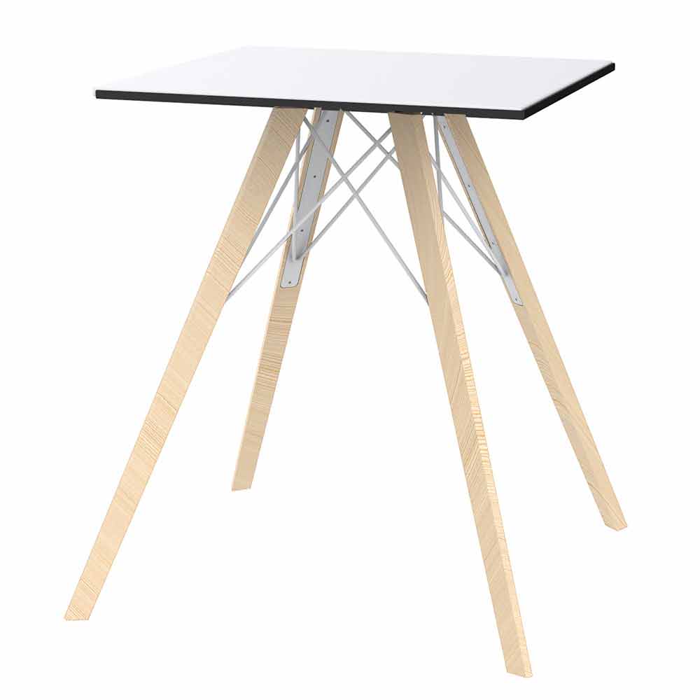 Masă de luat masa cu design pătrat din lemn de frasin și blat hpl alb sau negru și 3 dimensiuni, 4 bucăți.